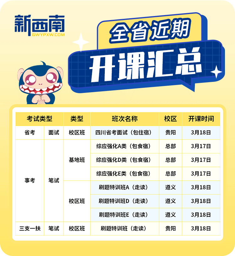 【银行】贵阳农村商业银行股份有限公司招聘公告贵阳农村商业银行股份有限公司(简称“贵阳农商银行”)成立于2011年12月22日,注册资本38.23亿元人民币,是由原贵阳市云岩、南明、小河、白云四城区农村信用社(合行)改制而成,有着50多年的历史传承和文化底蕴,是贵阳市委、市政府直接领导的地方国有银行、是贵州省第三大地方法人银行、是全省规模最大的地方性农村法人金融机构。截止2023年末,全行资产总额1500余亿元,主要经营指标较成立初期均实现倍增。贵阳农商银行总行坐落于贵阳市金融城,下设12家一级支行、1家特殊资产管理支行及85家二级支行,分布在贵阳市区、清镇市及修文县城,现有干部员工2000余人。 作为贵州省第一家股份制农商银行,在市委市政府的 领导下,贵阳农商银行始终坚持“乡村振兴特色银行”的市场战略定位,并确立了打造社区银行、数字银行、特色银行、精品银行“四大银行”的建设目标,始终聚焦主责主业,积极发挥金融作用,为客户提供高效优质金融服务,全力助推中小微企业和“三农”主体等实体经济发展,在“强省会”行动、“四新四化”等省市战略部署中,贡献了作为一家地方金融国企应有的力量。 旭日东升,未来可期。热忱邀请优秀的你加盟贵阳农商银行2024年“超享聘·旭日计划”,共同为贵阳农商银行高质量发展谱写新篇。现将面向社会公开招聘大学生事宜公告如下: 一、招聘岗位及人数 综合服务经理岗50人 二、用工形式 报考人员录用后,与贵阳农商银行签订劳动合同,试用期管理按照贵阳农商银行相关管理规定执行。 三、工作地点 贵阳市,含三县一市。 四、福利待遇 四险一金、企业年金、补充医疗、双轨晋升、教育培训、工会福利等。 五、招聘条件 (一)基本条件 1.具有中华人民共和国国籍,拥护中国共产党的领导,遵纪守法、诚实守信,具有良好的个人品质和职业道德,愿意履行贵阳农商银行员工义务和岗位职责。 2.具有与岗位要求相适应的专业、学历及能力素质。 3.具有较好的团队合作精神、语言沟通能力和学习能力。 4.具有正常履行工作职责的身体条件,参照现行公务员录用体检标准体检合格,并能在规定时间内完成所有的体检项目;具备健康良好的心理素质。 5.符合银行从业人员要求。 6.符合贵阳农商银行履职回避的有关规定。 (二)岗位条件 1.学历:2022、2023、2024年毕业的全曰制本科及以上毕业生,其中:国内“双一流”院校毕业生、“QS世界大学排名”前100名境外院校毕业生优先报名。国内高校毕业生须取得国家统招的普通高等院校全曰制本科及以上学历、学位,应届毕业生应在2024年7月31日前取得相应的学历、学位证书。境外院校毕业生须获得我国教育部学历学位认证。 2.年龄:截止报名日,本科26岁(含)以下,研究生28岁(含)以下。 3.专业:经济学类、财政学类、金融学类、经济与贸易类、电子商务类、数学类、统计学类、工商管理类、农业经济管理类、管理科学与工程类、计算机类等与贵阳农商银行业务发展相关的专业。 (三)不符合招聘条件的情形 1.在向贵阳农商银行求职过程中提供虚假的个人履历、劳动关系证明文件或其他不诚实行为; 2.相关法律法规政策规定不得聘用的员工或其他经本行认定不适合的。 六、招聘流程 按照网上报名、资格审查、在线测评、笔试、面试、体检、考察(背景调查)等程序,择优录取。其中: (一)网上报名 应聘者登陆https://grcbzp.zhaopin.com(报名时间开始后报名入口正式开放)进行网上注册,在线填写个人简历、上传报名资料,完成职位申请。未按规定上传相关资料或资料不清晰的,视为无效。需上传资料如下: 1.本人近期免冠证件照1张(证件照格式为JPEG或JPG,大小在30K以内),身份证(正反面)。 2.2024年毕业的应届生需提供教育部学籍在线验证报告、就业推荐表,2022年、2023年毕业的应聘者需提供毕业证书、学位证书、教育部学历证书电子注册备案表,境外院校毕业生需提供教育部留学服务中心学历学位认证书。 (二)报名时间:2024年3月13日9:00-3月14日17:00。对照岗位招聘条件,按照简历投递先后顺序进行筛选,资格初审合格人数达到招聘计划的1:10比例时,停止审核。 七、注意事项 (一)应聘者对个人填报信息及提供资料的真实性负责,如与事实不符,贵阳农商银行有权取消其录用资格并记录在案,由此造成的后果由应聘者自行承担。 (二)此次招聘不指定考试辅导用书,不举办也不委托任何机构举办考试辅导培训班,不收取任何费用,请应聘者提高警惕,谨防上当受骗。 (三)应聘者务必确保手机联系方式准确无误,并保持通讯畅通。 (四)在各招聘环节中,贵阳农商银行会及时通知进入下一环节的应聘者;对未能进入下一环节的应聘者,不再另行通知。 (五)在线测评、笔试、面试等事宜另行通知。 (六)此次招聘以贵阳农商银行官网(http://www.gynsh.com)及贵阳农商银行授权网站发布信息为准,其他未经贵阳农商银行授权的网站、微信等媒体发布的信息与我行无关。 (七)贵阳农商银行有权根据岗位需求变化及报名情况等因素,调整、取消或终止招聘工作,并对本次招聘享有解释权。 (八)报名咨询电话: 0851-84132969,0851-88115193(9:00-12:00,14:30-17:30)。 针对事业单位联考 除了包食宿的基地班次 新西南也有走读的校区班次 家门口即可学习 兴义校区事考刷题特训班 直降3000元 3月19日盛