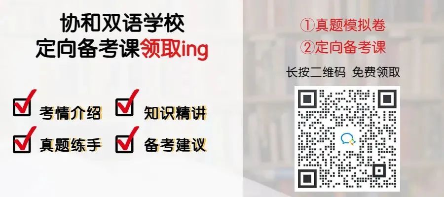 为了精准备考协和万源入学考试,小编给大家准备协和万源的入学真题测试卷,涵盖英语、数学。赶紧扫码添加菠萝老师领取吧!