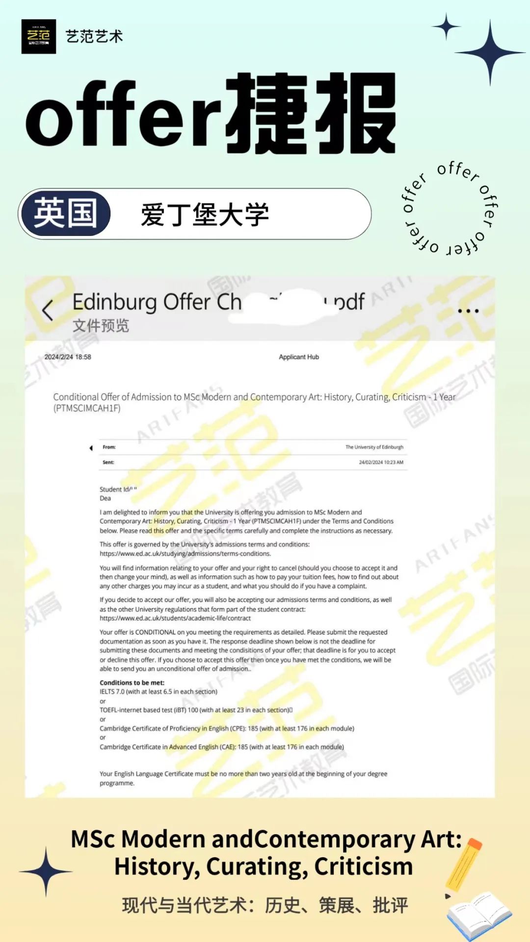双一流艺术类院校,公共艺术教育专业,83.6/100,有过文化机构助理实习经历和设计博物馆实习经历。