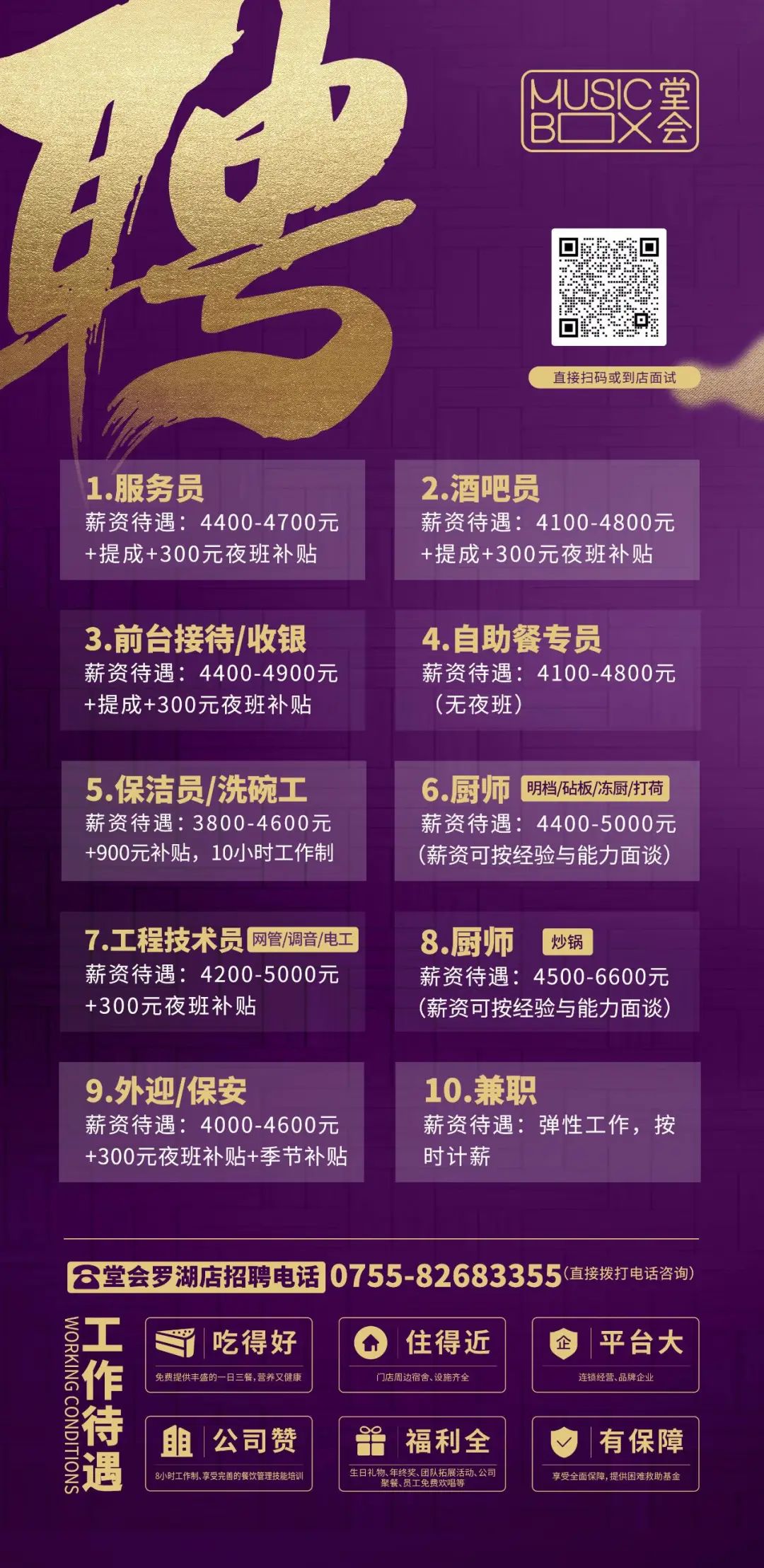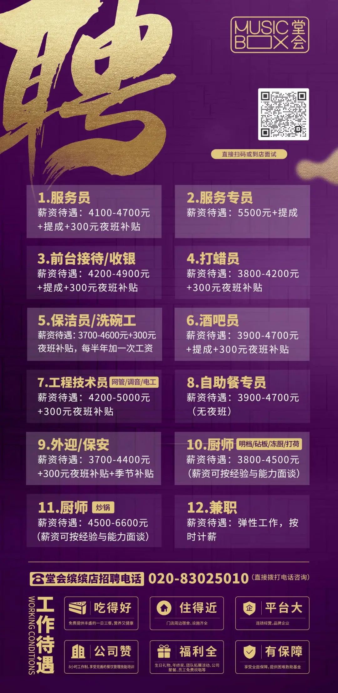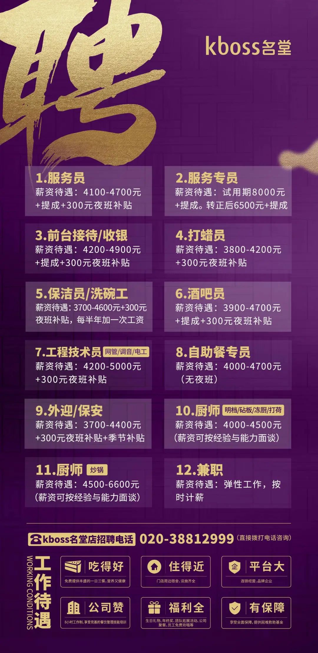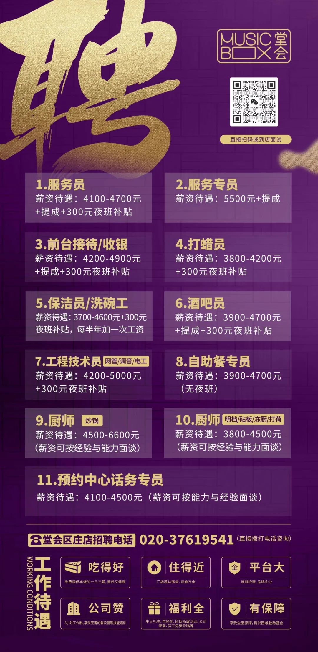 兼职全职!大型连锁品牌广州多区招人!免费三餐、提供宿舍、年终奖、聚餐等,福利全、有保障~广州堂会发展控股有限公司招贤纳士