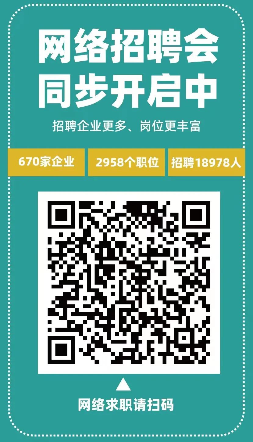 温馨提示:没能到线下招聘会现场求职的朋友,也可以扫描下方二维码参加线上招聘会。