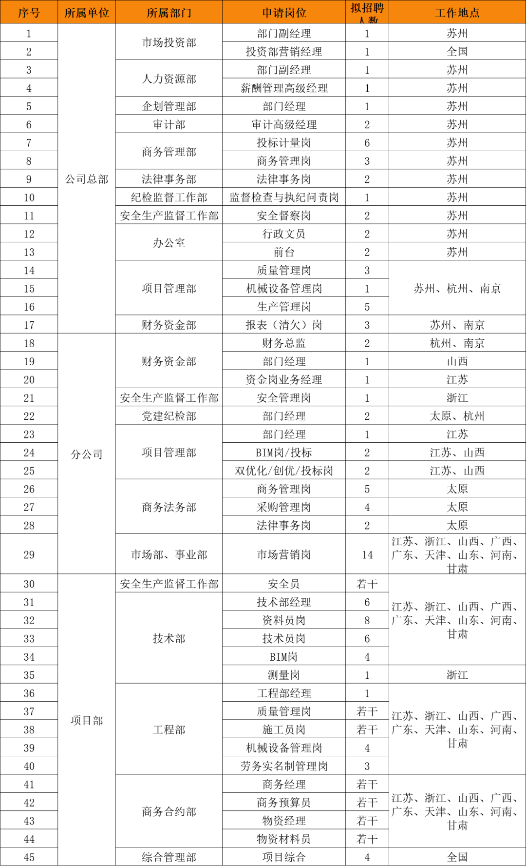 根据业务发展需要,中建六局华东建设有限公司决定面向六局内部和社会进行长期招聘。现就有关事项公告如下: