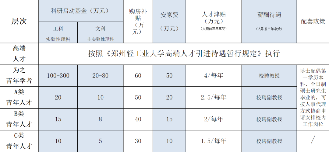 按照《郑州轻工业大学高端人才引进待遇暂行规定》执行。