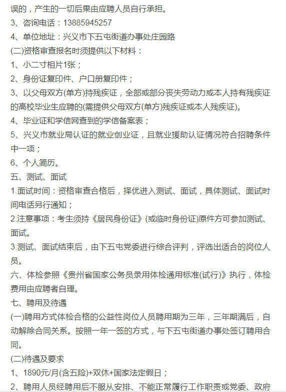 兴义招聘号,兴义招聘,兴义招聘求职的好平台,每日发布考试信息、招聘会、行业动态、人事行政、客服、财务销售、快递员、送餐员、外卖员、司机、汽车维修、护理、房产中介、餐饮招聘、普工、保洁、保姆月嫂等工作招聘信息,欢迎您的关注!因工作需要,经下五屯党委、政府研究,决定面向社会公开招聘公益性岗