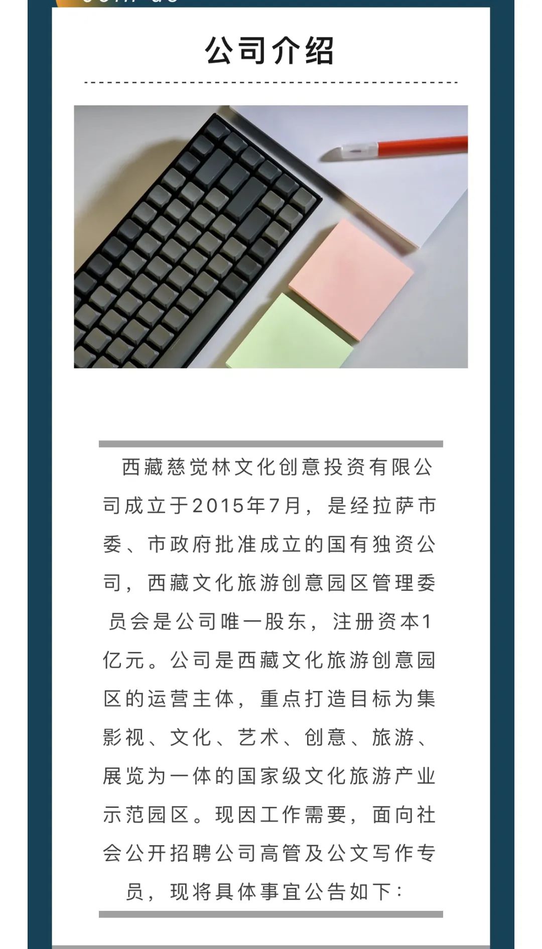 >薪资8000-20000,西藏慈觉林文化创意投资有限公司招聘公告!