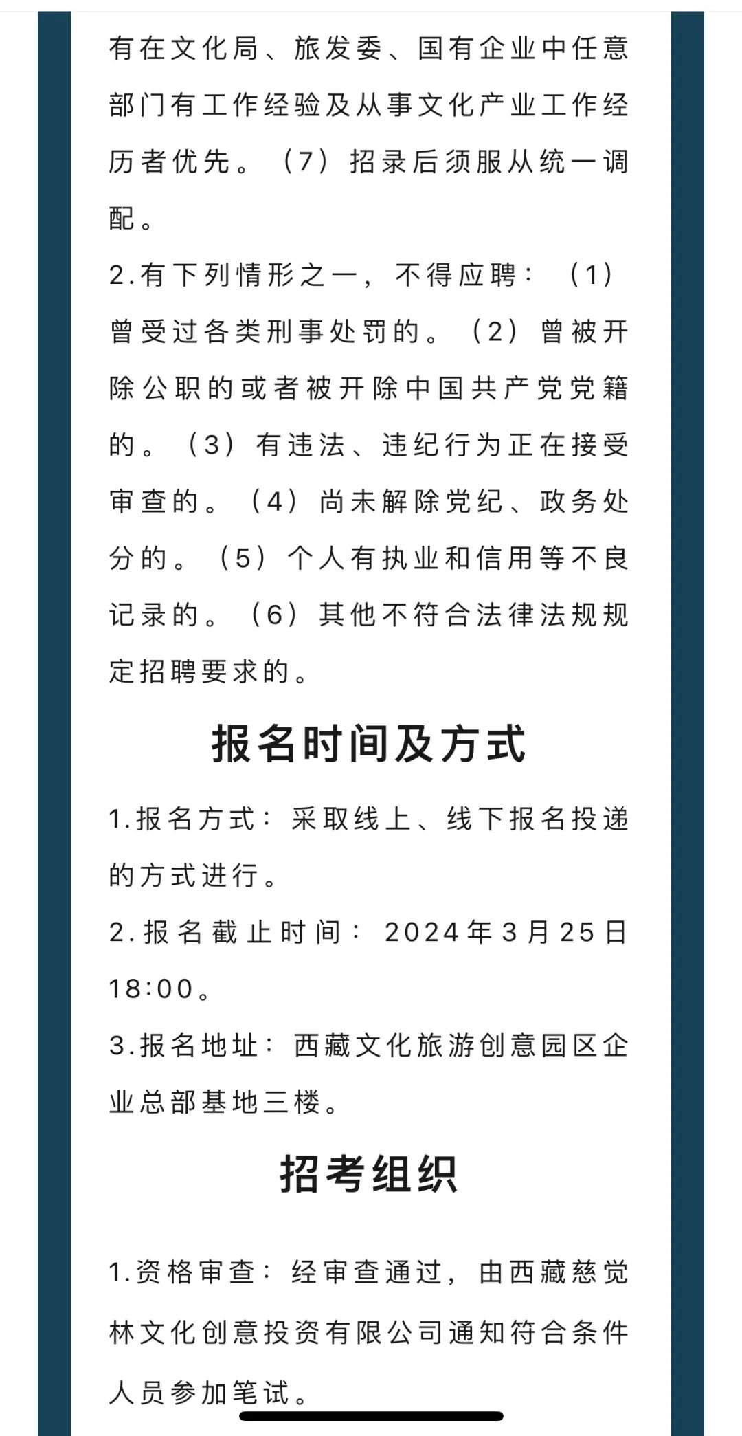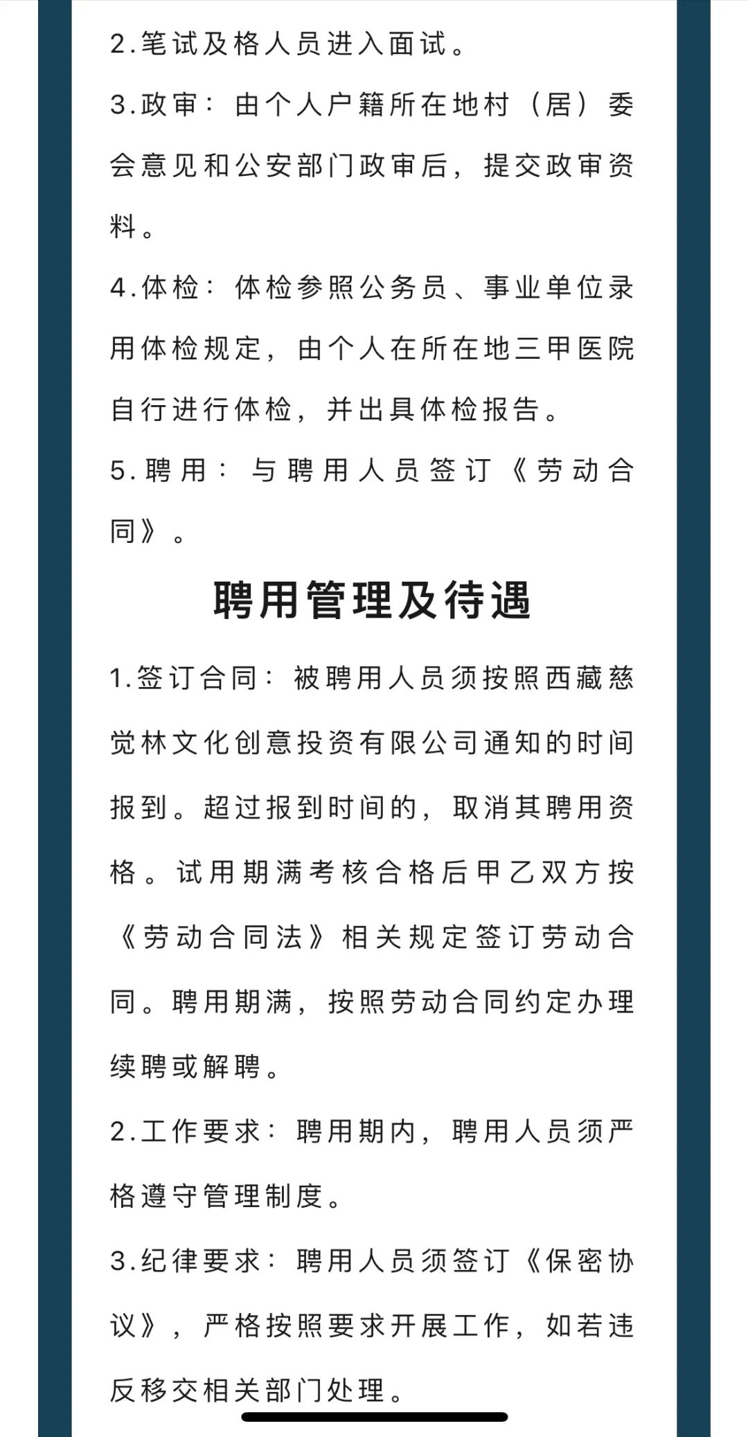 薪资8000-20000,西藏慈觉林文化创意投资有限公司招聘公告!