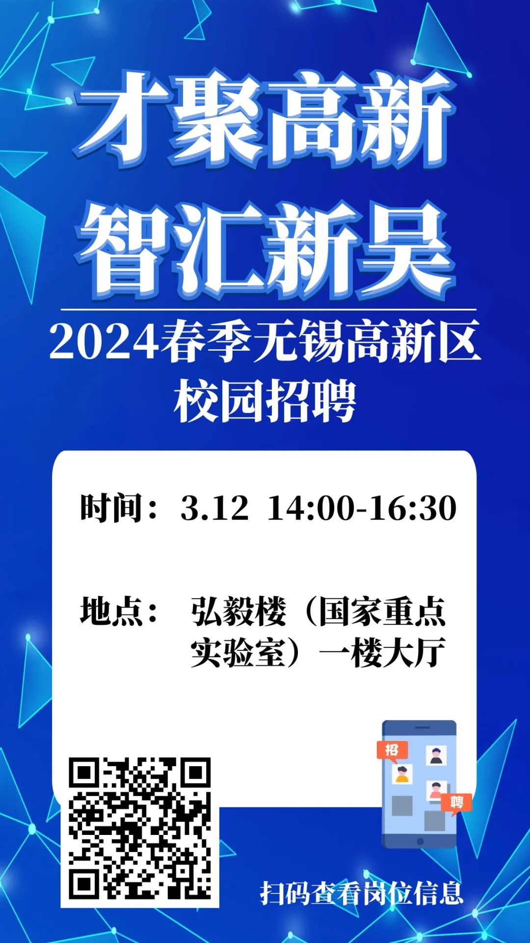 >招聘会 | “才聚高新 智汇新吴”2024春季无锡高新区校园招聘——南京工业大学站