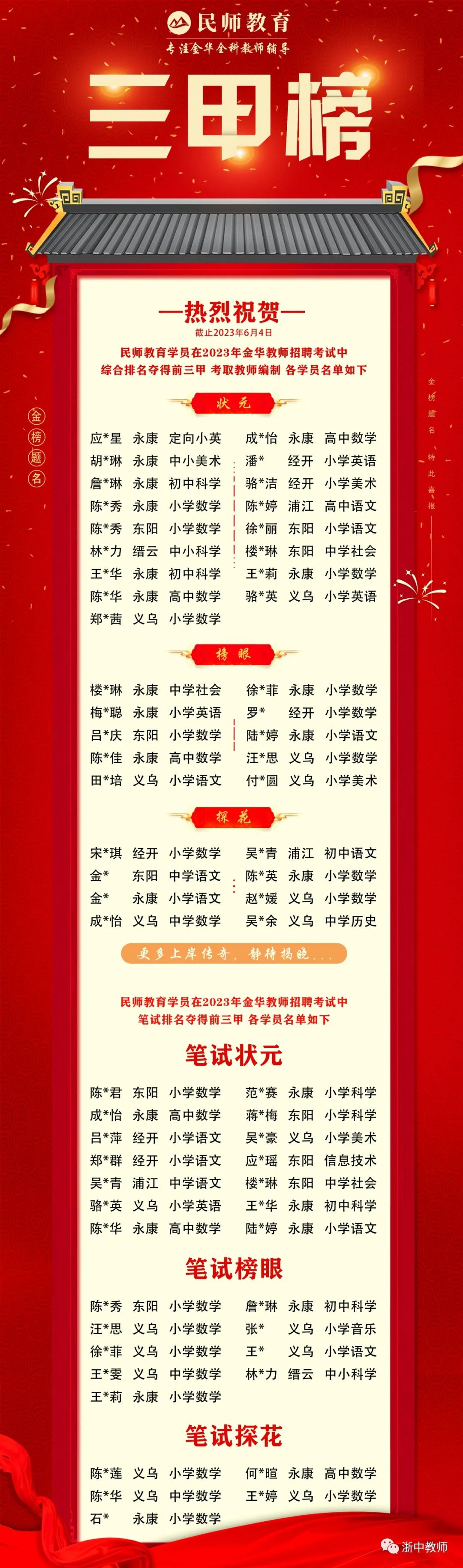 资格审查、考试、考试成绩由相关学校电话通知;体检、考察和聘用等事项在义乌市教育局政务公开专栏公告,不再另行通知。