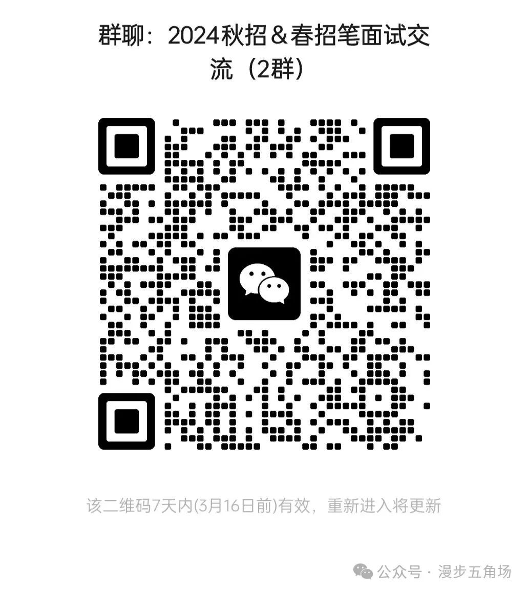新建了一个春招交流群,如果大家有什么关于春招的问题(例如笔面试进度、offer比较等)可以在群里随时提问、互帮互助,同时也会有往届学长学姐在线答疑。