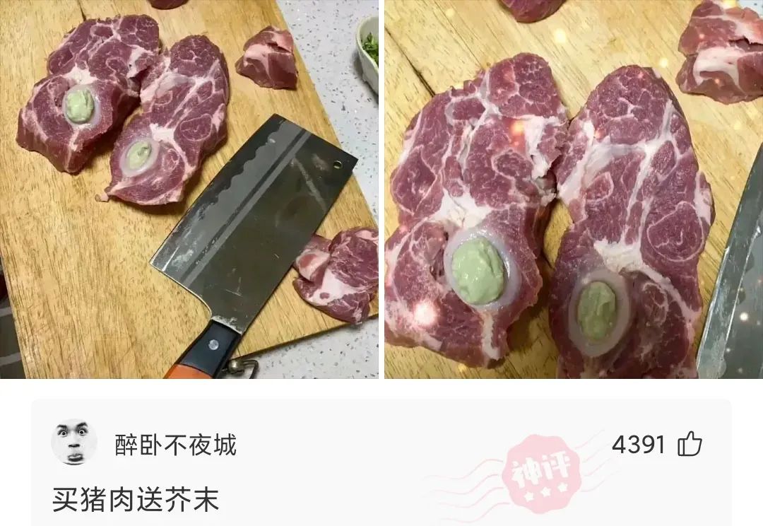 今天早上买的猪肉,切一刀下去发现里面另有乾坤,这东西是什么可以吃吗?