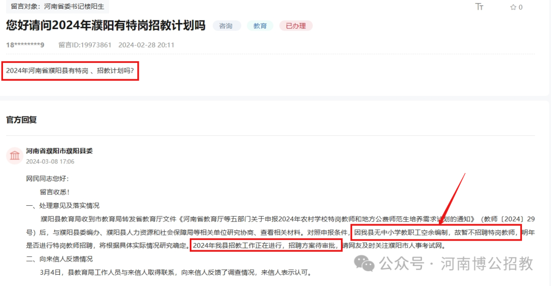 问:2024年河南省濮阳县有特岗 、招教计划吗?