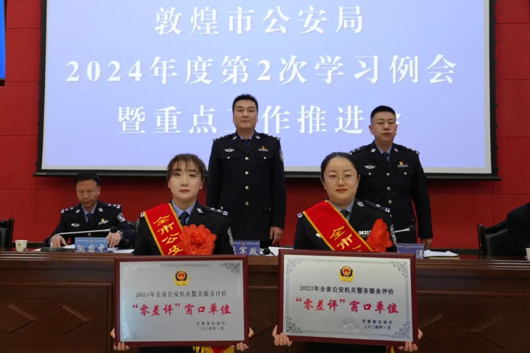 会议传达学习了2024年国务院政府工作报告(摘编)、习近平在2024年春季学期中央党校(国家行政学院)中青年干部培训班开班仪式上的讲话精神、全省坚持和发展新时代“枫桥经验”暨主动创稳推进会会议精神和赵志刚同志赴敦煌肃北阿克塞督导检查道路交通安全管理工作讲话要求。宣读了《甘肃省公安厅关于2023年全省公安机关警务服务评价“零差评”窗口单位评定情况的通报》,并向荣获全省“零差评”窗口单位颁发了奖牌。通报了近期全局执法质量、队伍建设和春雷行动工作进展情况,局领导对分管部门工作提出了具体要求。