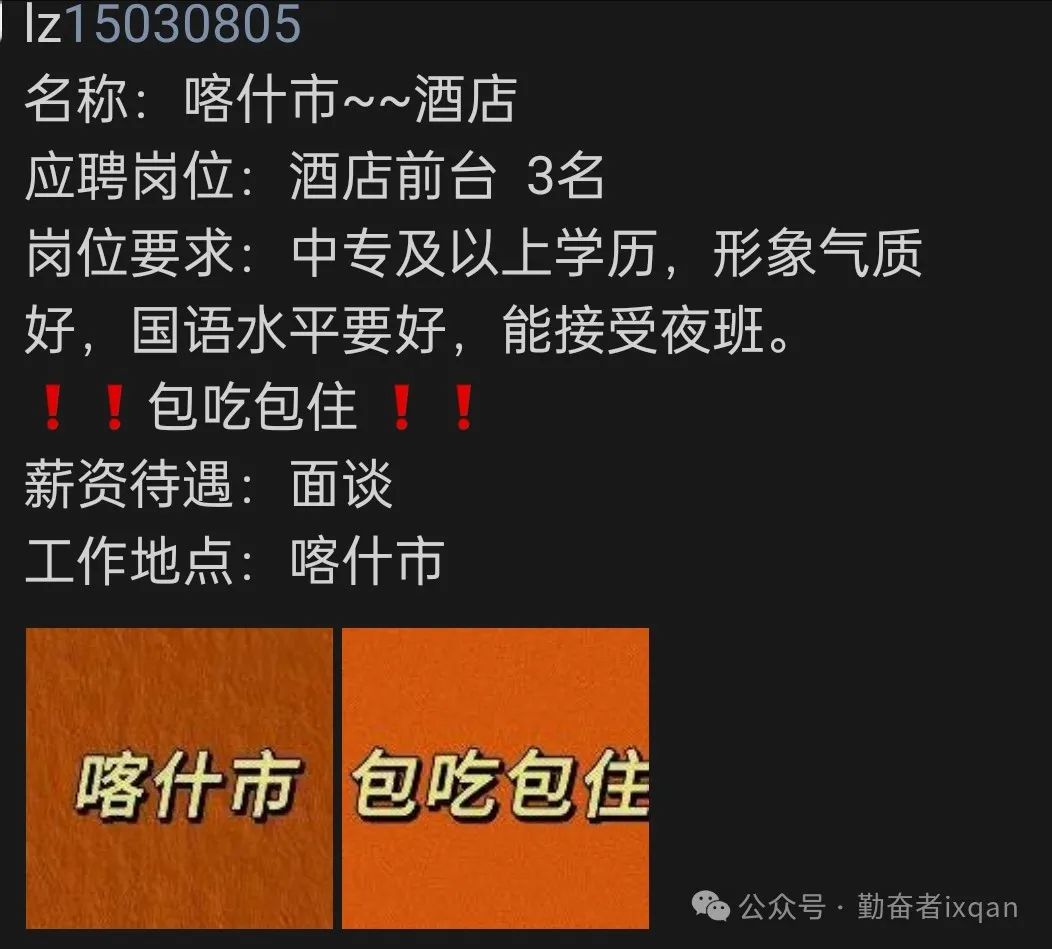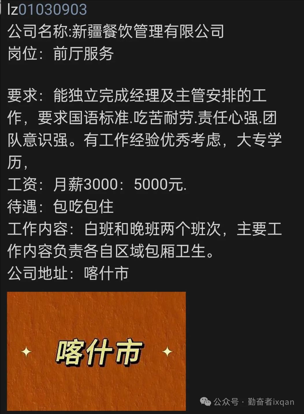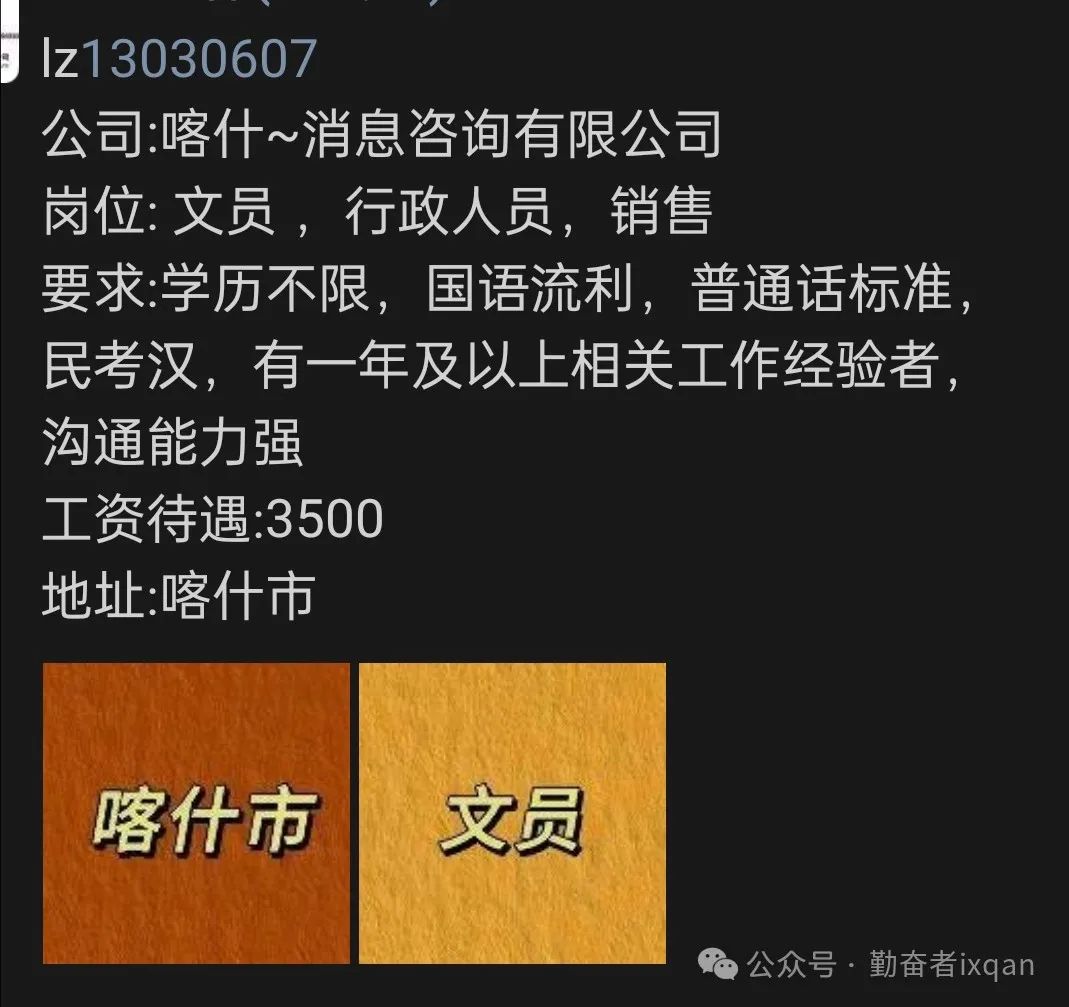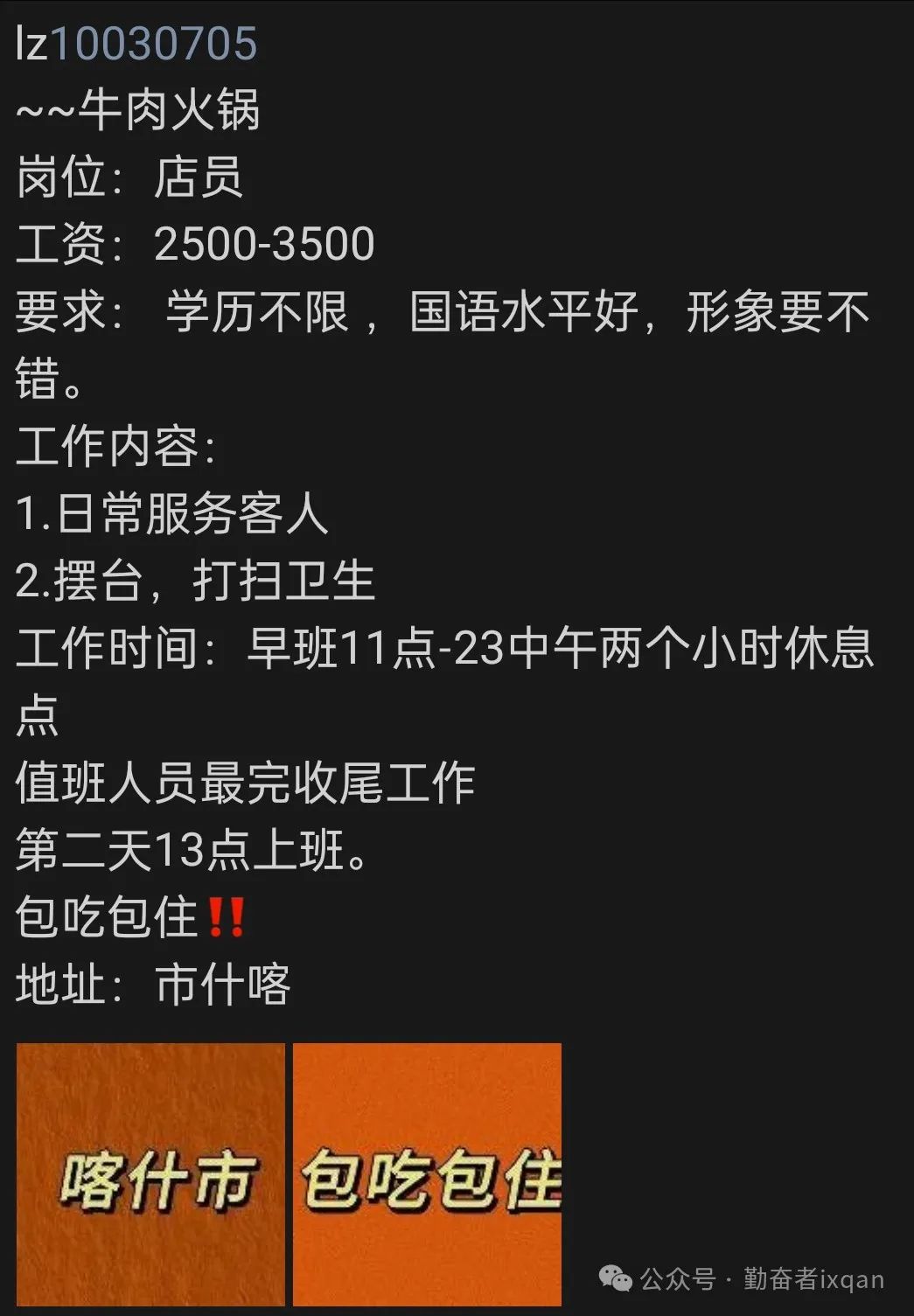 قەشقەردىكى مەلۇم بىر شىركەت كەڭ كۆلەمدە خىزمەتچى خادىم قوبۇل قىلىدۇ مۇقىم مائاش 3000元ياتاق بىلەن تەمىنلەيدۇ ئادىرسى قەشقەر شەھىرى ❗❗免费信息 包住❗❗