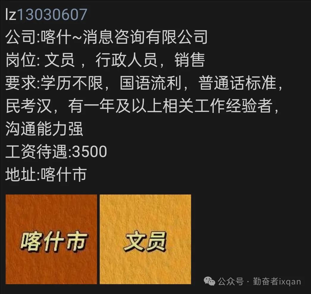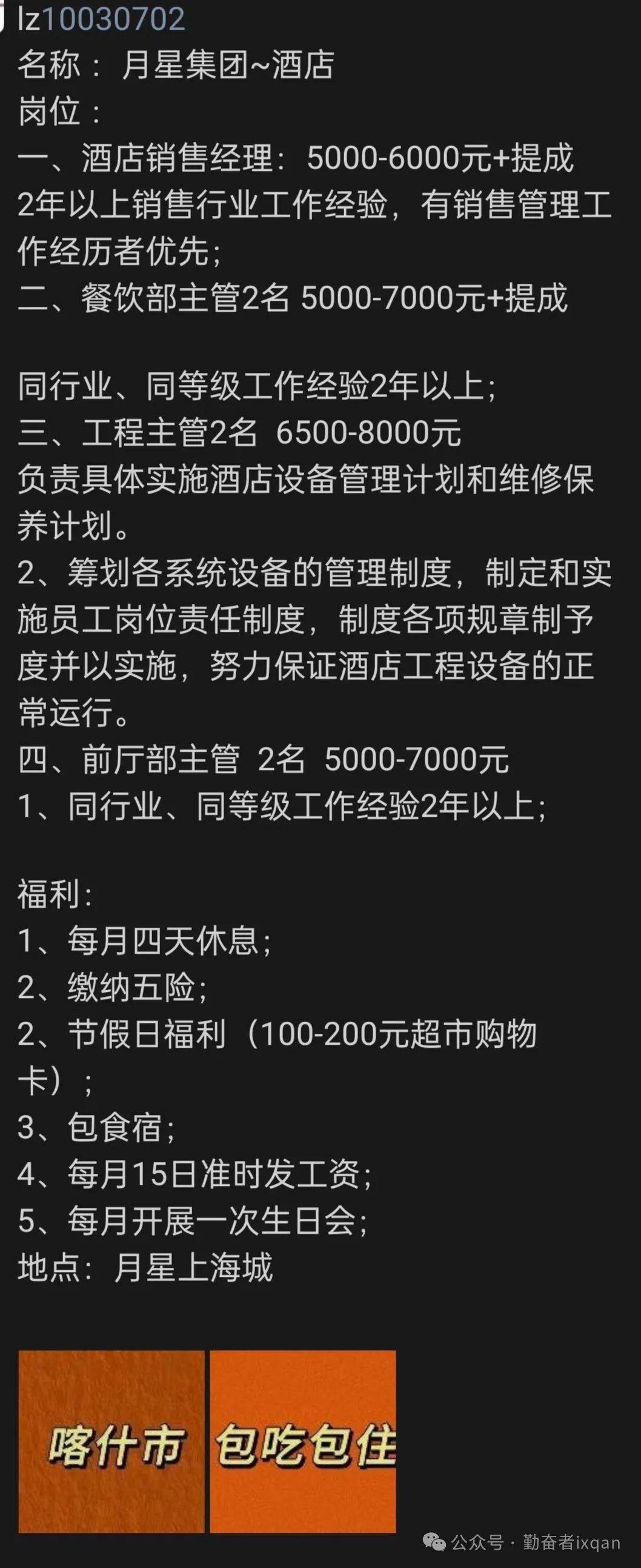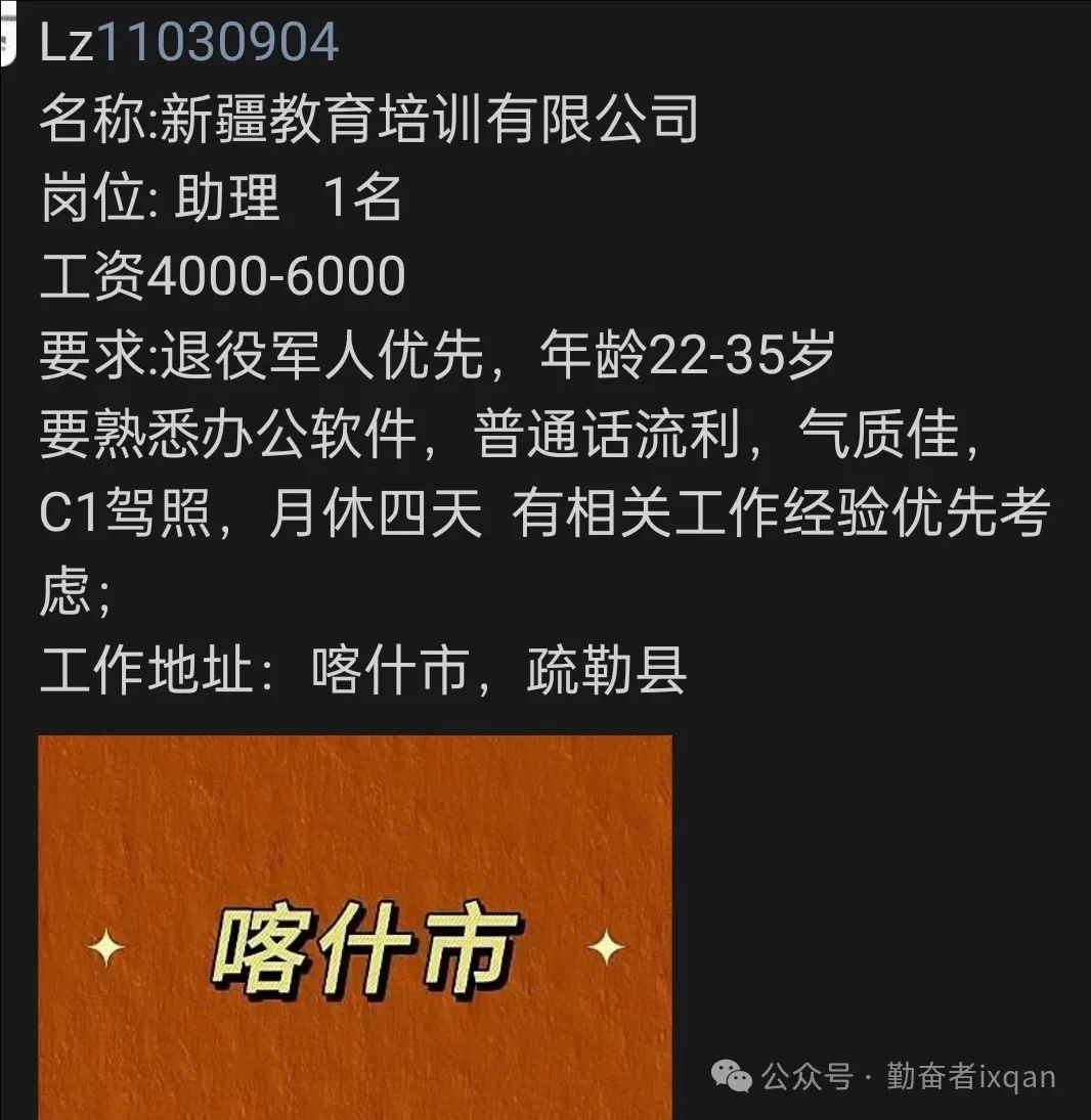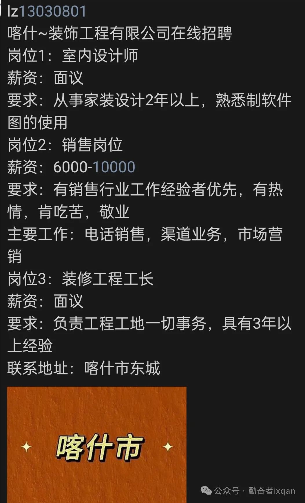 قەشقەردىكى مەلۇم بىر شىركەت كەڭ كۆلەمدە خىزمەتچى خادىم قوبۇل قىلىدۇ مۇقىم مائاش 3000元ياتاق بىلەن تەمىنلەيدۇ ئادىرسى قەشقەر شەھىرى ❗❗免费信息 包住❗❗