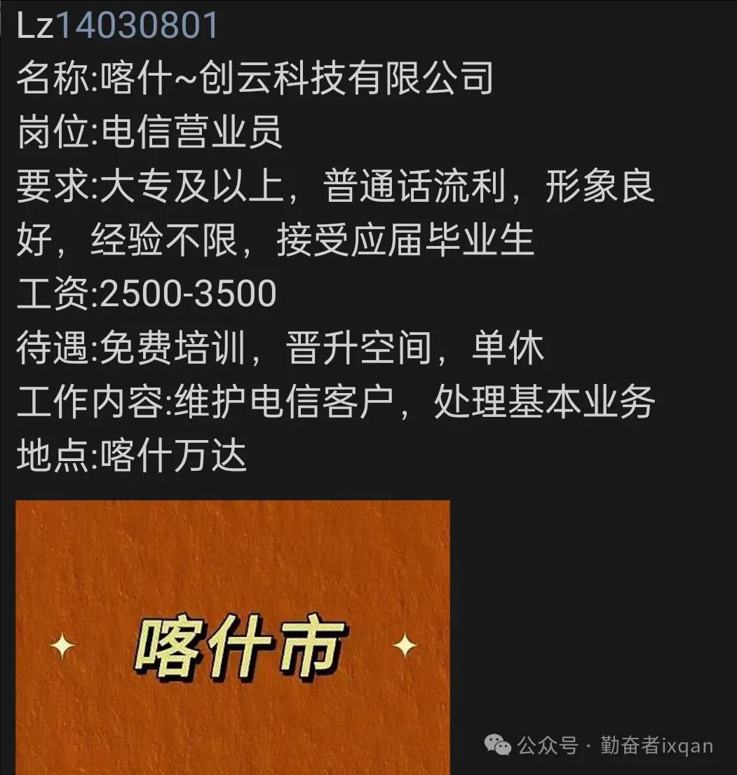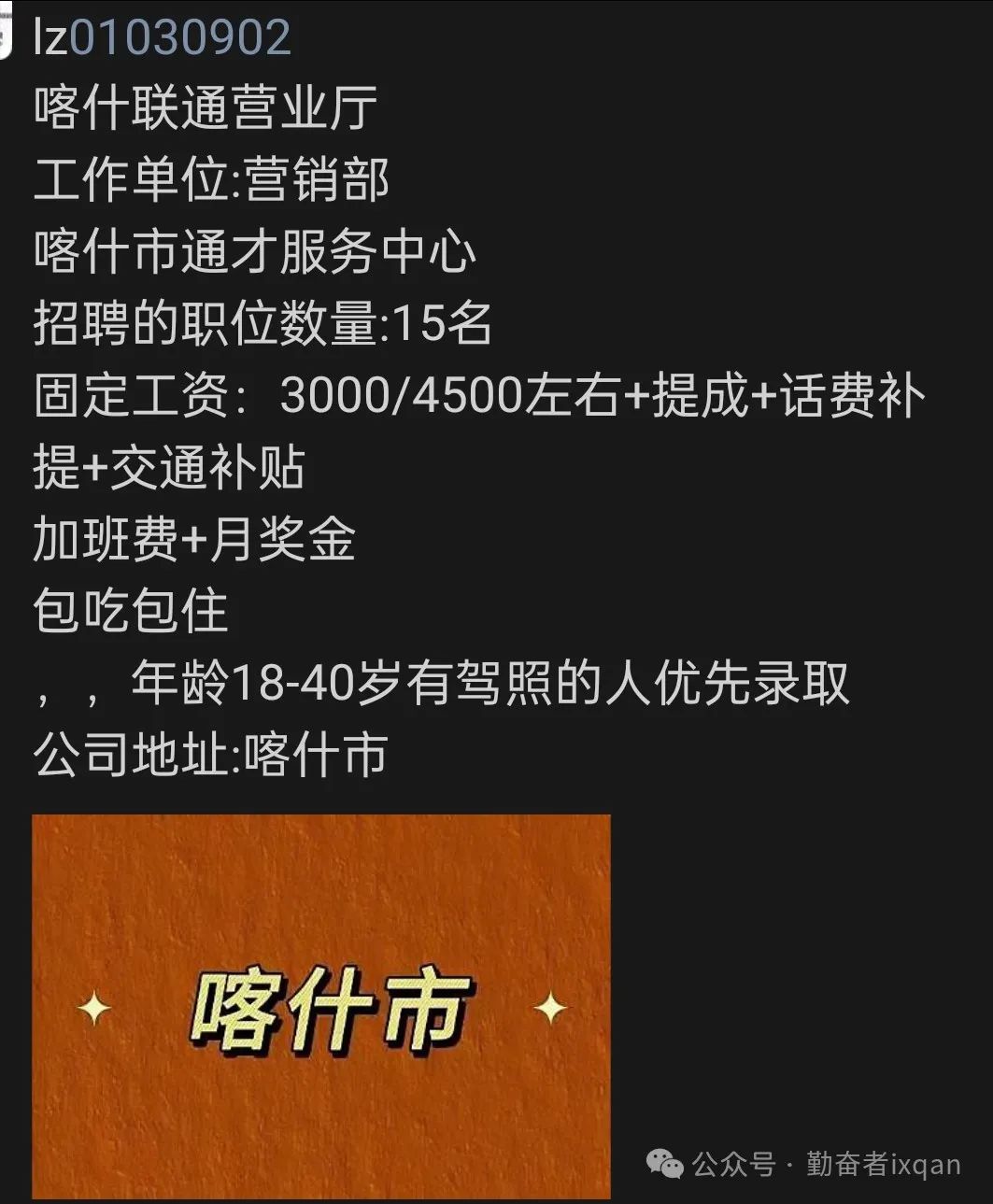 喀什通联公司招聘5名电话营业销务员,工资1500+提成+午饭,休月4天。工点地作:喀什市人民东路189号联通公司,联系15609984263(微信同号)قەشقەر ەمشەلرىب خەۋەرلىشىش.شىركتىگە 5نەپەر تسنوفېلېت قوبۇل زىمىلىق.1500+ئۈنۈم مائاش+ چۈشلۈك تاماق . .اديائ تۆت نۈك ئارام شىلىئ ئورنى. نەشرىيات ئايلانما لىيەنتۇڭ شىركىتى .15609984263( ۋېيشىن . ئورتاق)