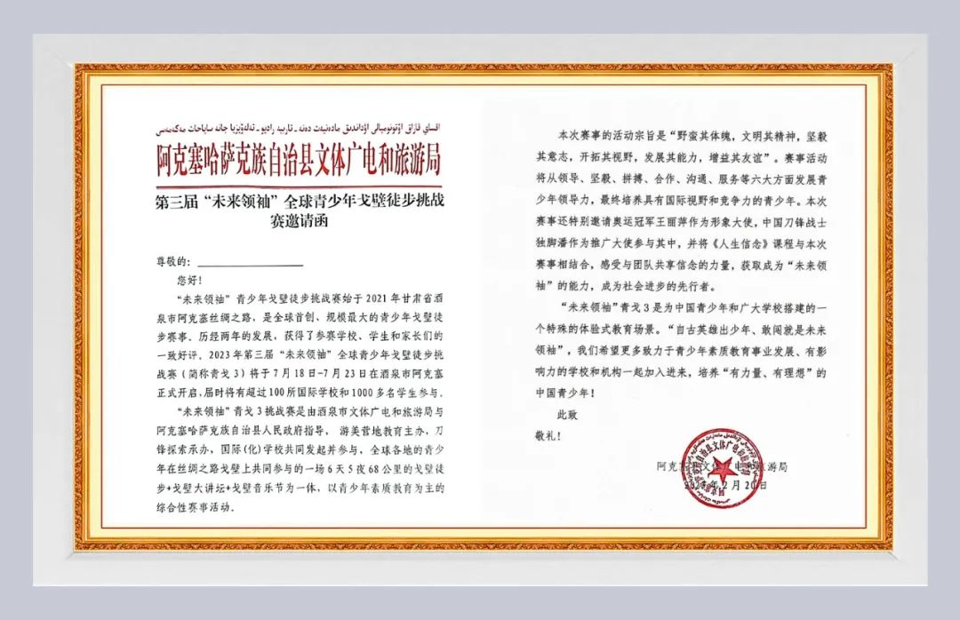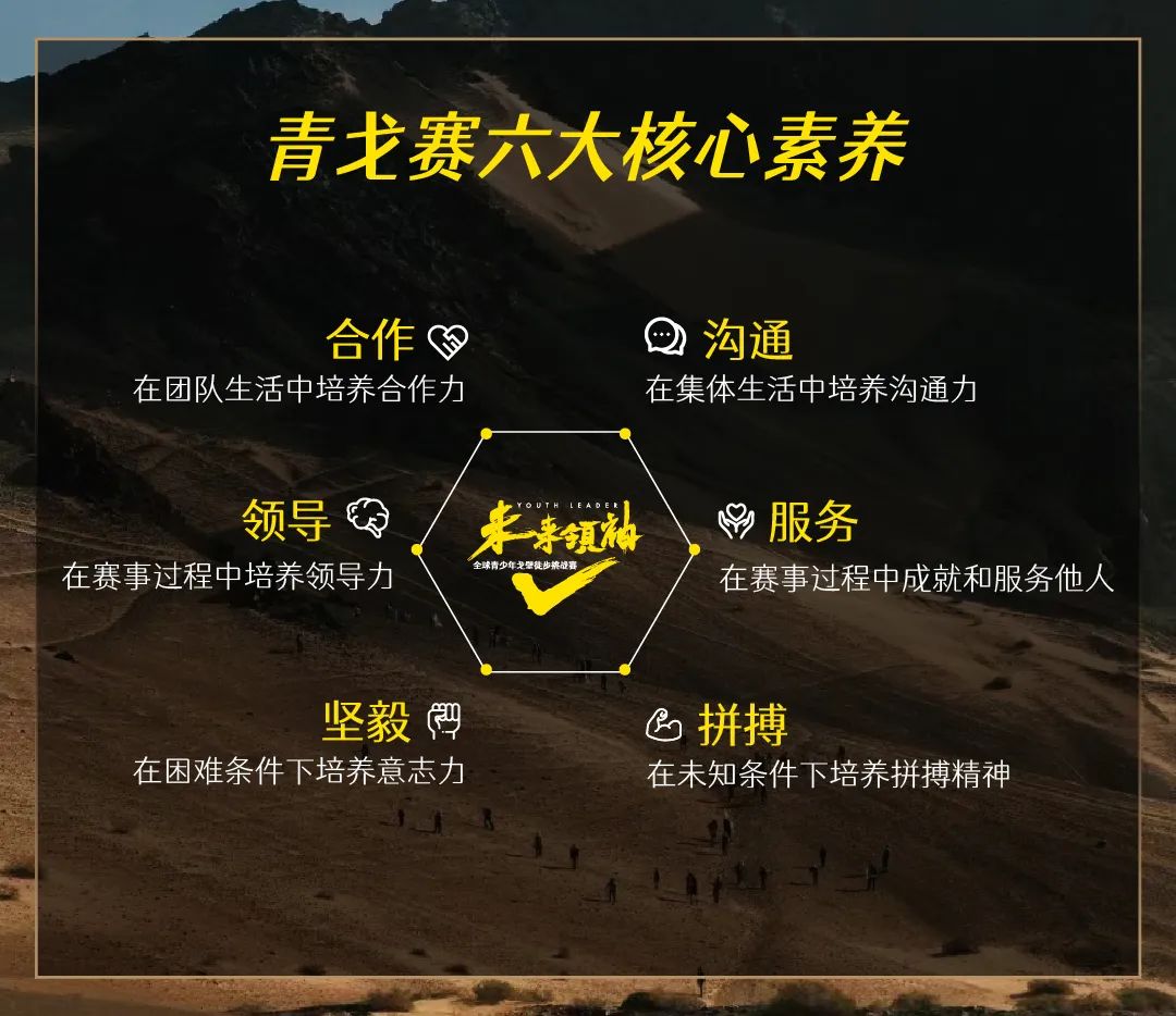 2024年7月18日,第四届“未来领袖”全球青少年戈壁徒步挑战赛即将连续四年在中国敦煌·阿克塞吹响集结的号角!赛事全面推进户外素质教育发展,引领孩子们走进自然,成就与天地抗争的韧劲,达成心灵的成长与蜕变,感受与团队共享信念的力量,获取成为“未来领袖”的能力,成为社会进步的先行者。