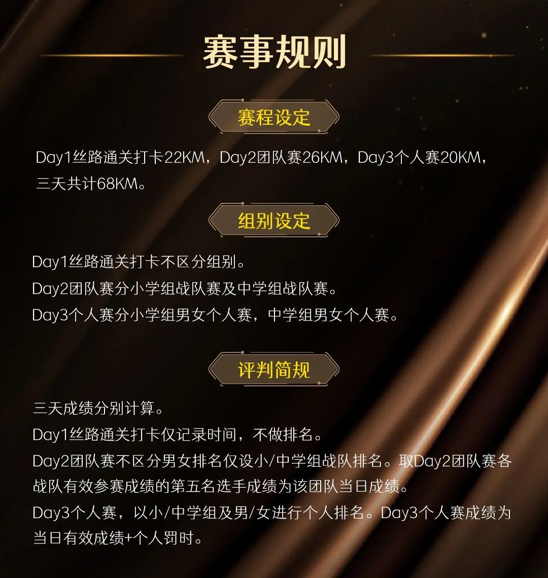 颁发给中学组/小学组中三天竞赛日成绩之和时间最短的前3名队伍