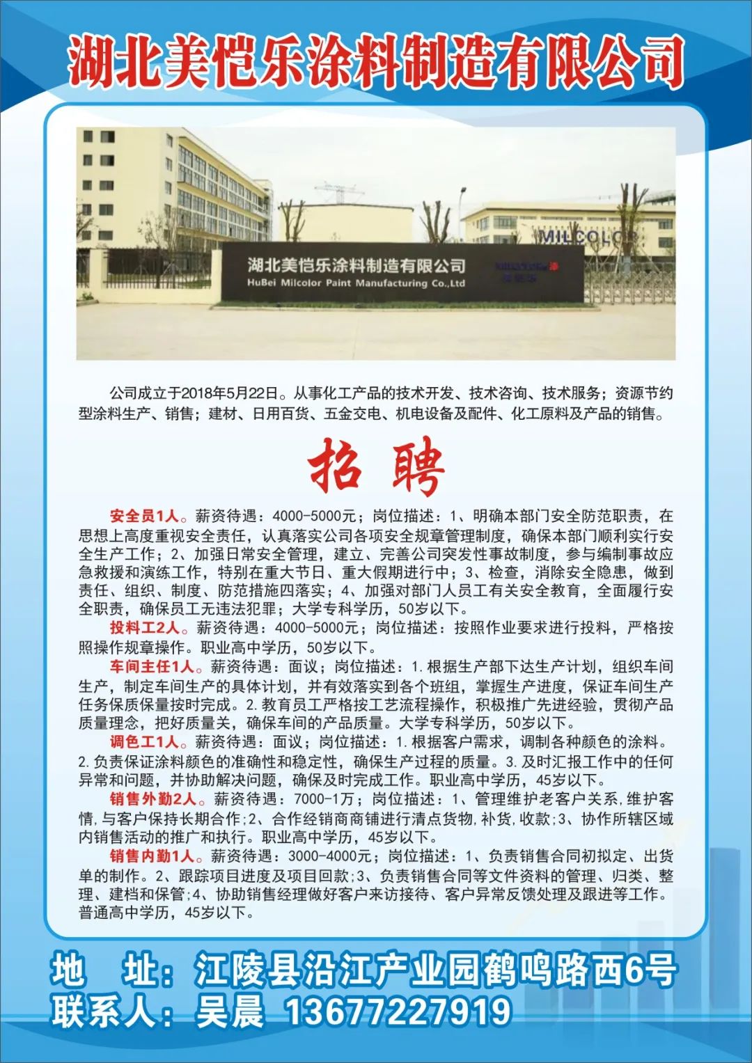 新年“薪”机遇 求职在家乡:江陵县2024年“春风行动”企业最新招聘信息来啦(六)