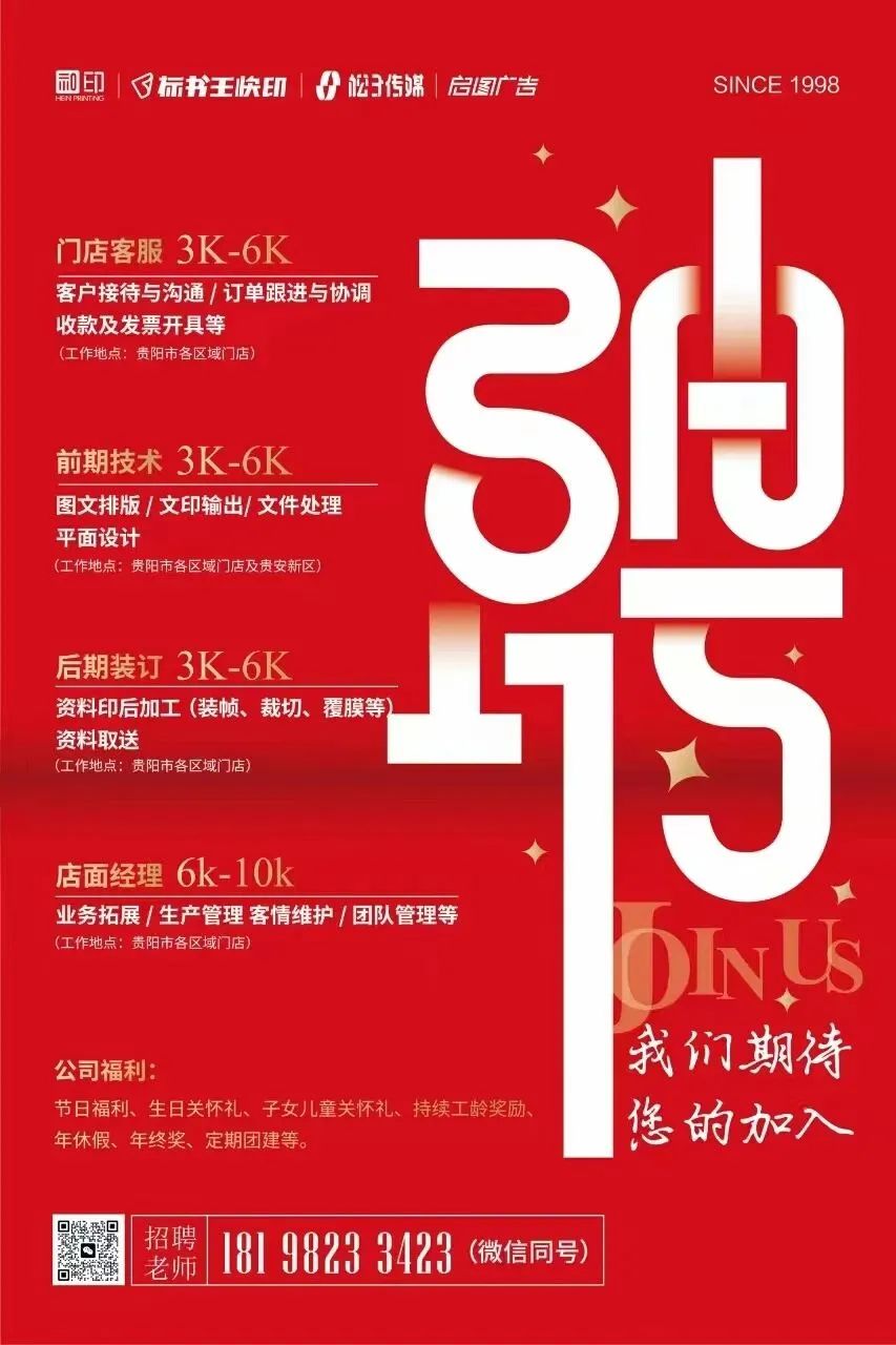 标书王快印贵阳市各区域门店招聘!月薪3000-10000元!