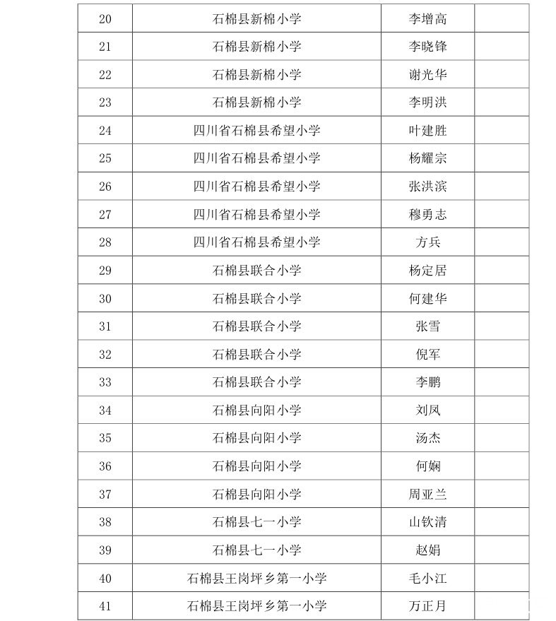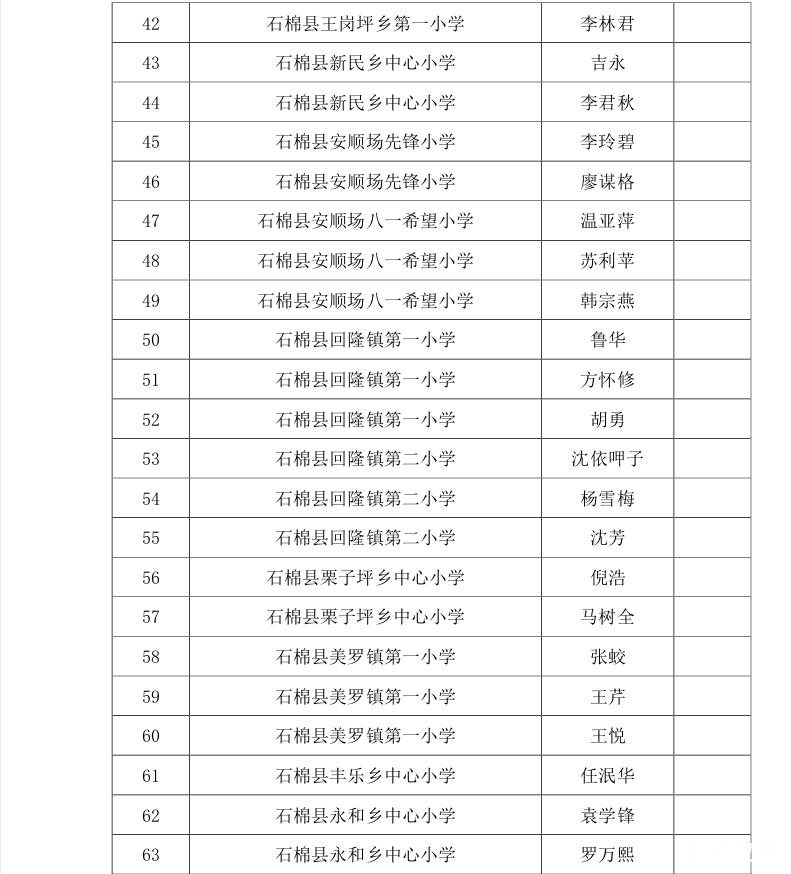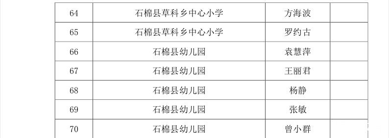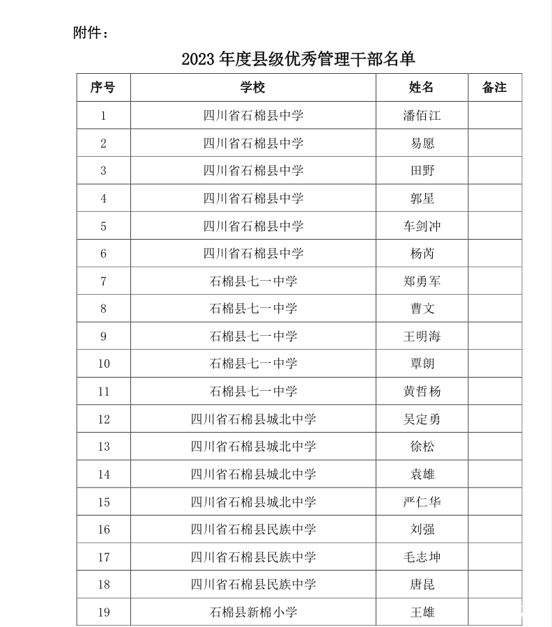 按照《石棉县教育局关于印发<石棉县教育系统绩效考核方案(2023年修订稿)>的通知》(石教字〔2023〕44号)文件精神,经学校综合评定上报,现将2023年度县级优秀管理干部名单予以公示。