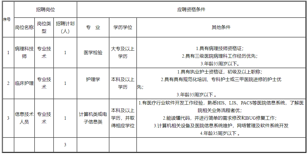因医院业务发展的需要,现决定面向社会公开招聘3名编外聘用工作人员,相关事项公告如下: