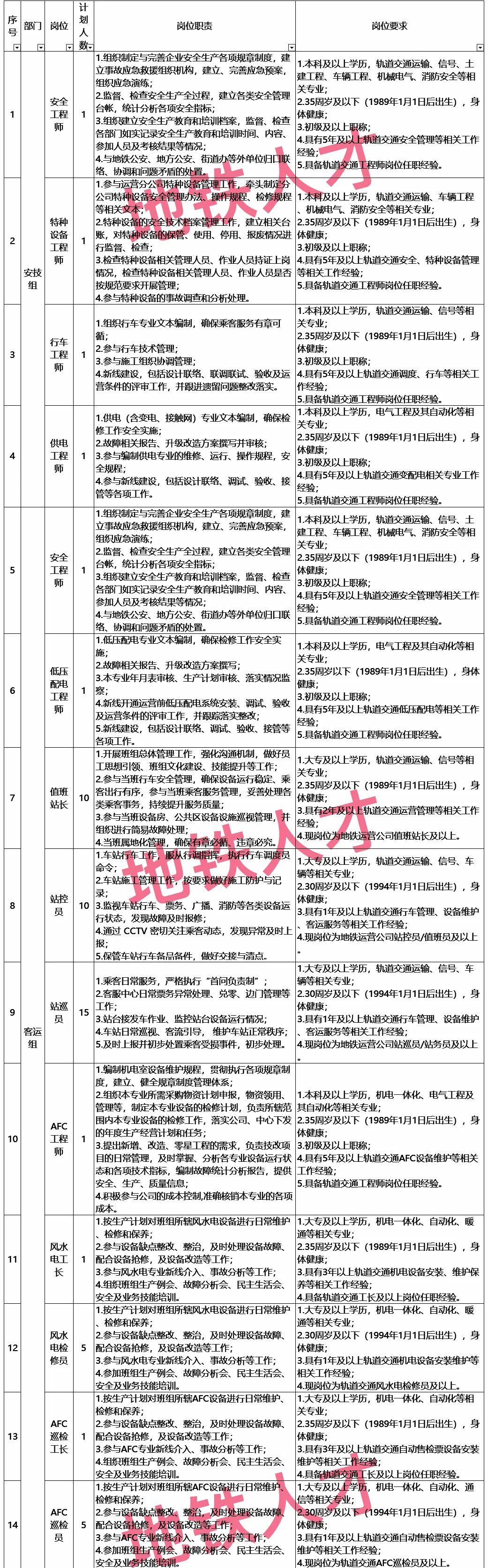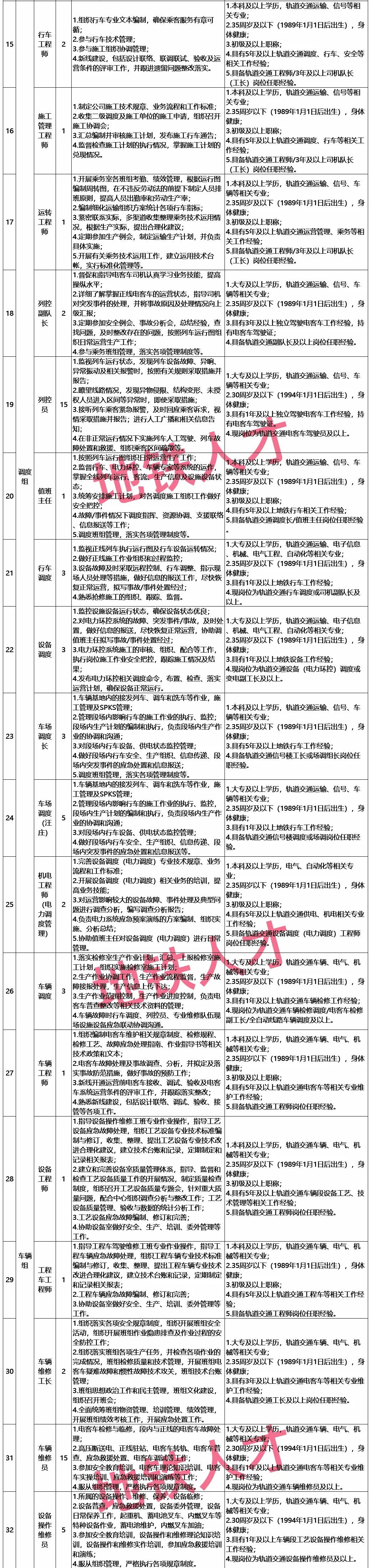 当前位置:首页>华北>机遇!又一地铁集团今日发布招聘公告!招聘电客车司机、各类检修、调度、工程师等岗位!