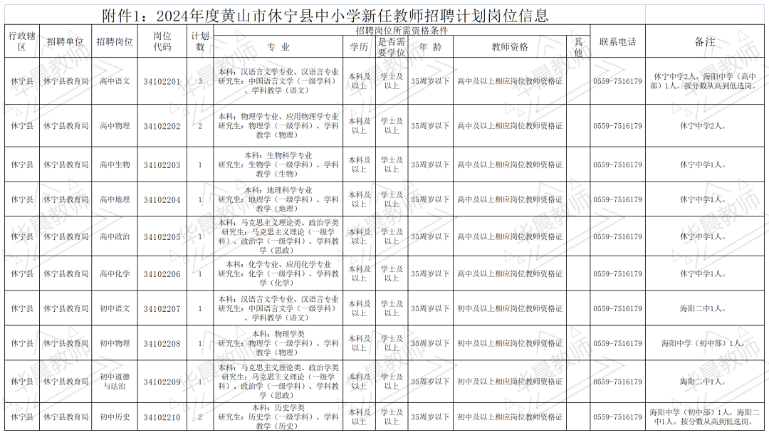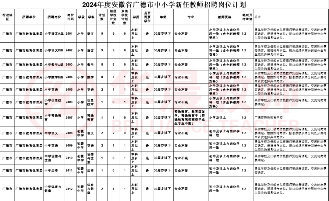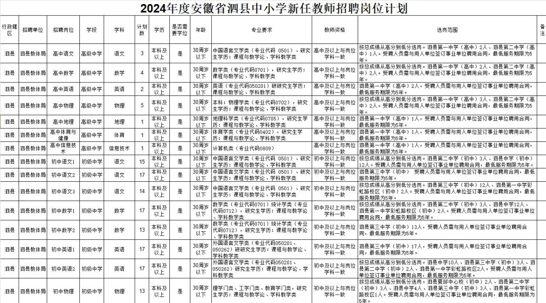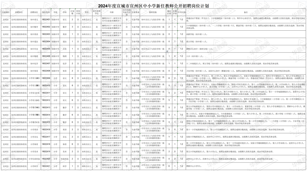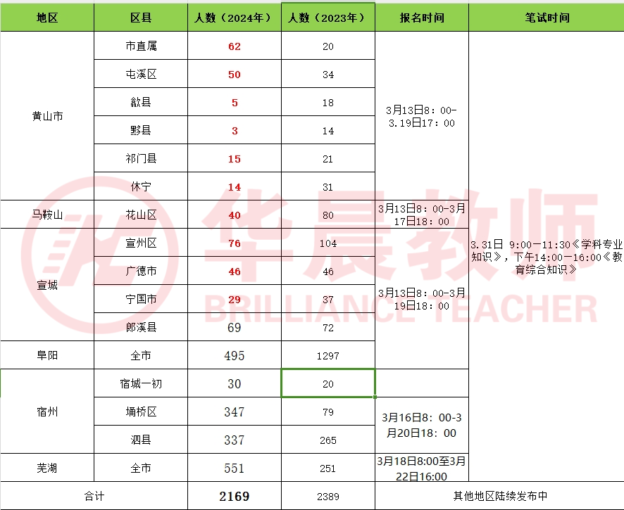 目前为止,广德市、宁国市、宣州区、郎溪县、花山区、黄山市直、祁门县、黟县、歙县、屯溪区,休宁、宿州埇桥,宿城一初,泗县、芜湖公告已出,共招聘2169名!