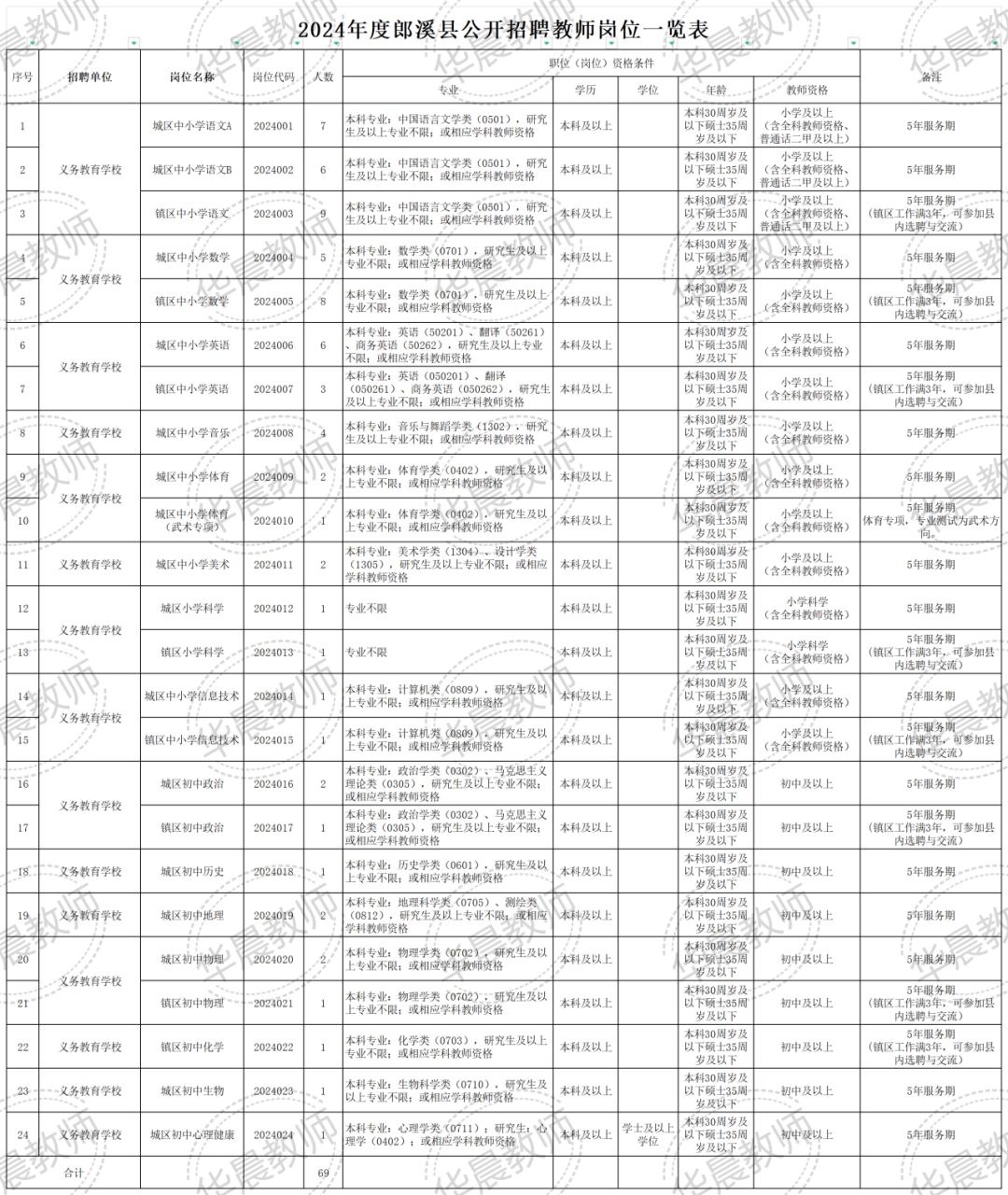 笔试时间:2024年3月31日上午 9:00—11:30《学科专业知识》(满分120分);下午14:00—16:00 《教育综合知识》(满分120分)