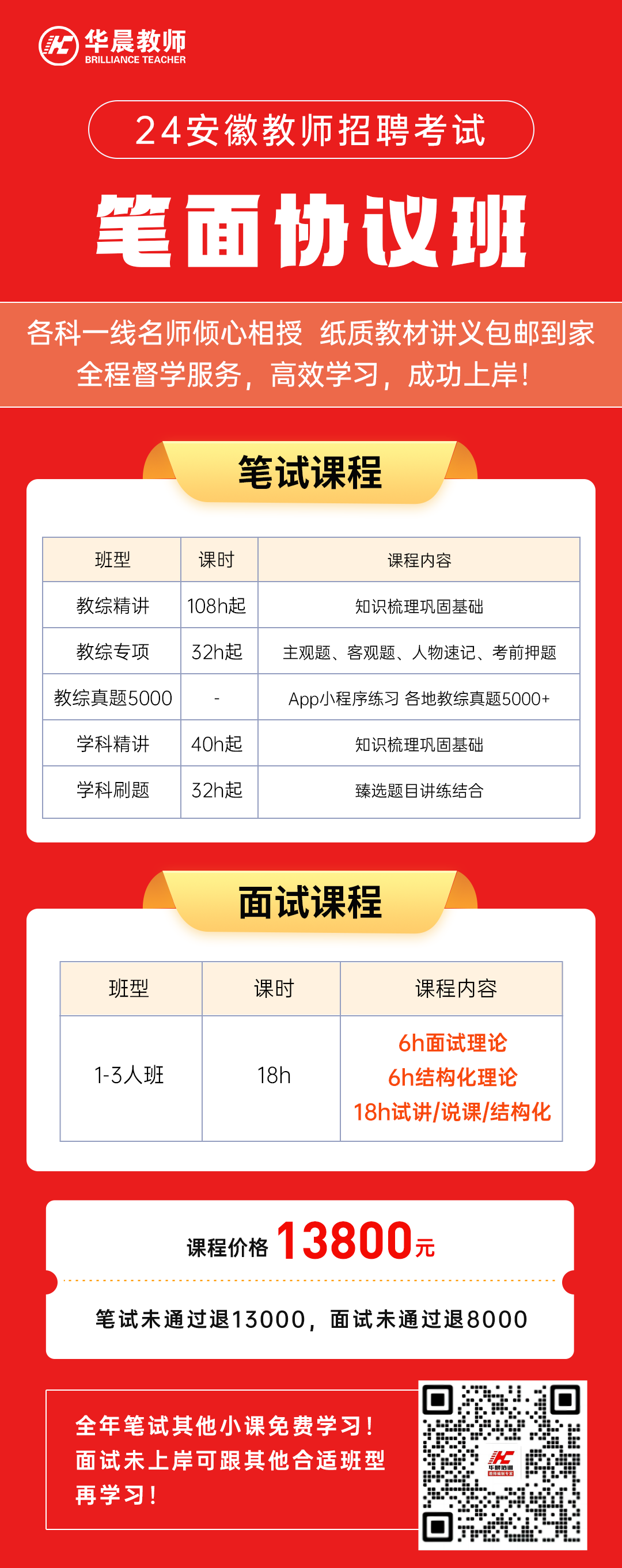 13800,笔试不过退13000,面试不过退8000
