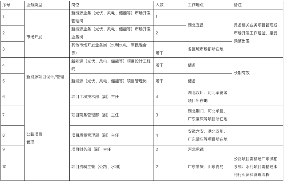 3.应聘新能源市场开发管理岗原则上应具备中级及以上职称,并具有5年及以上新能源等行业市场开发或项目管理工作经验;熟悉行业相关政策,具备较丰富的行业人脉及客户圈层资源者优先,持有一级建造师证书者或相关执(职)业资格者优先。