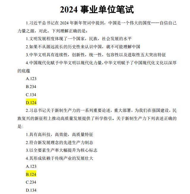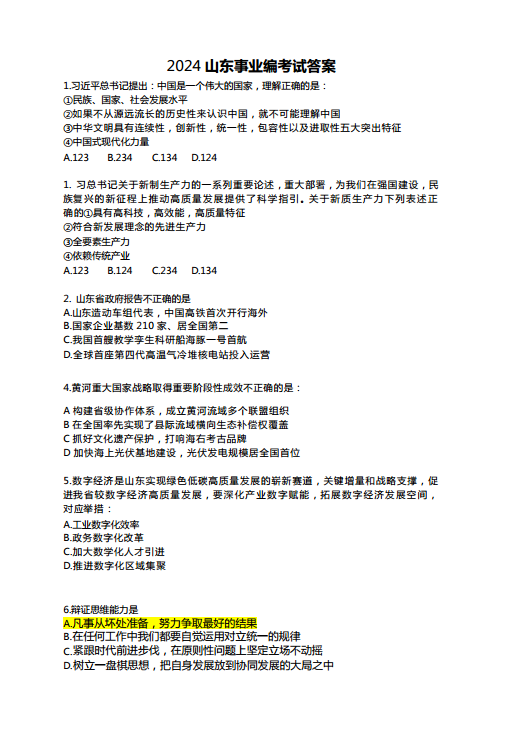 真题 | 2024山东事业单位真题+答案 电子版pdf