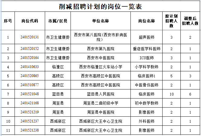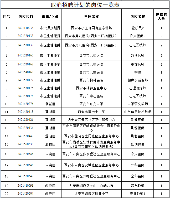 ![]() 西安市人力资源和社会保障局 关于削减和取消 2024年西安市事业单位 公开招聘(募)工作人员部分岗位 招聘计划的公告 2024年西安市事业单位公开招聘(募)工作人员网上缴费与报名确认已结束,根据《中共西安市委组织部西安市人力资源和社会保障局关于2024年西安市事业单位公开招聘(募)工作人员的公告》中开考比例的规定,现就削减和取消部分岗位招聘计划情况公告如下: 1.削减11个岗位共16个招聘计划。 ![]() 2.取消65个岗位共82个招聘计划。 ![]() ![]() ![]() ![]() 被列入取消岗位范围且已缴费的应聘人员,由陕西省人事考试中心通过互联网全额退还报名费。 中共西安市委组织部 西安市人力资源和社会保障局 2024年3月11日 ▼ ![]() |