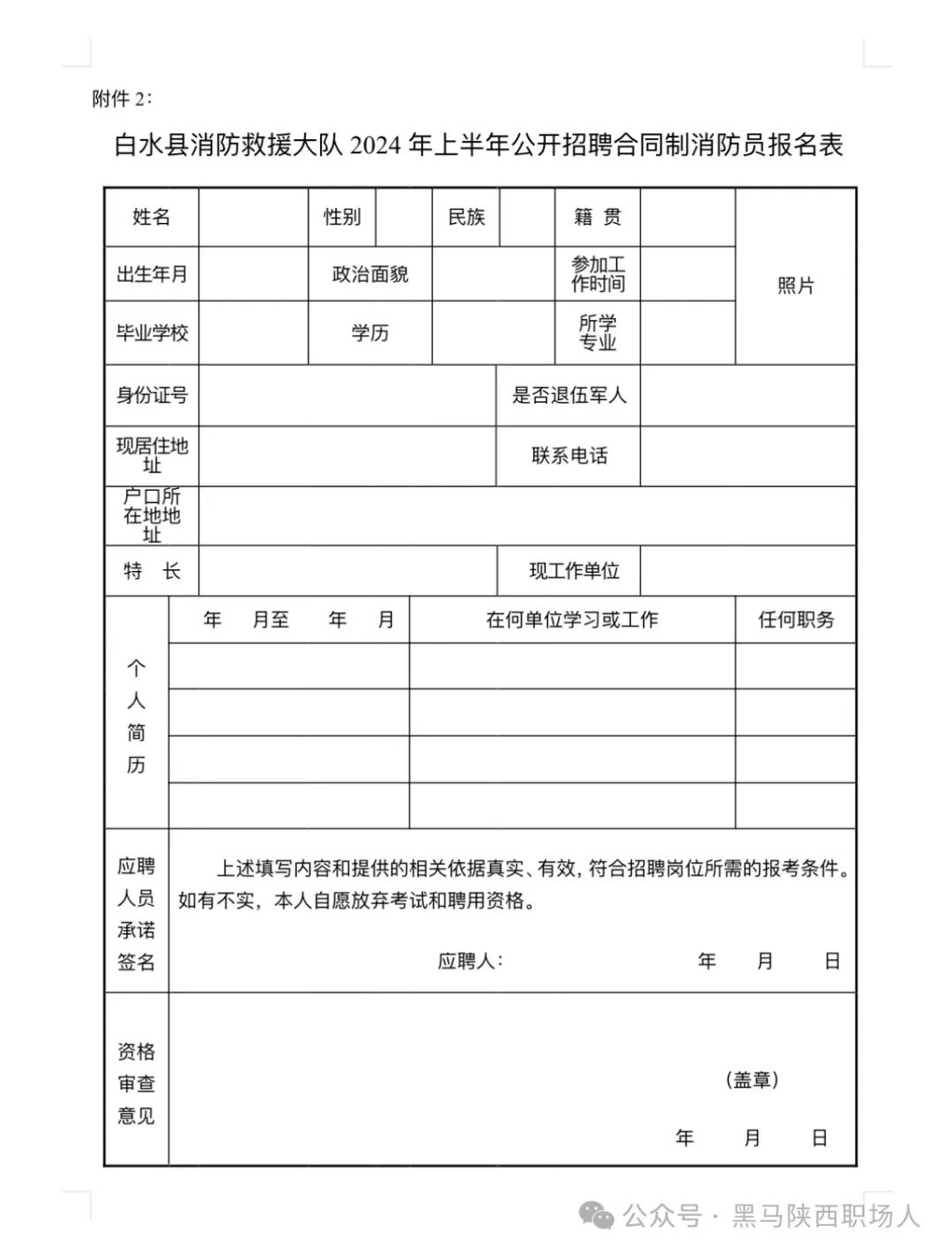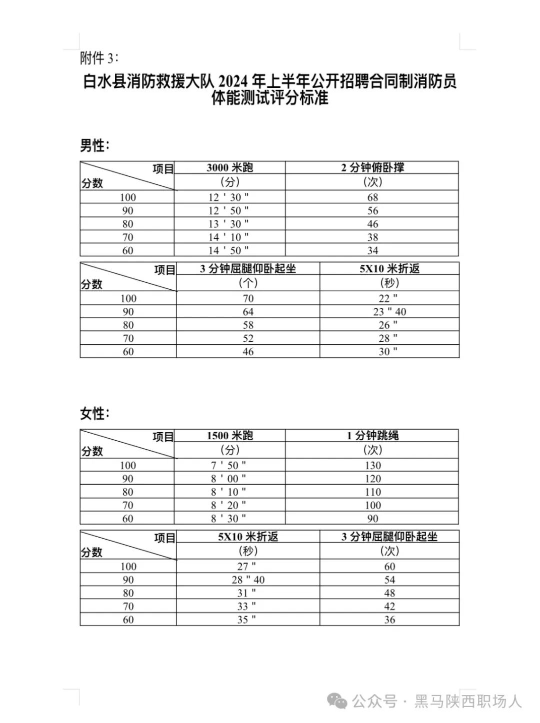 为了进一步加强白水县专职消防队伍建设,切实加强白水县人民生命财产安全,按照《渭南市人民政府关于印发渭南市消防能力提振计划的通知》的要求,结合我县实际,拟决定面向社会公开招聘5名合同制消防员。现将有关事项公告如下: 一、招聘岗位 拟招聘5名合同制消防员。(见附件1) 二、报名条件和报名方式 1.具有中华人民共和国国籍; 2.户籍所在地(渭南); 3.遵守宪法和法律,拥护中国共产党领导和社会主义制度; 4.年龄为20至26周岁(出生日期在1998年1月1日至2004年12月31日之间); 5.具有高中以上文化程度; 6.身体和心理健康; 7.具有良好的品行; 8.法律、法规规定的其他条件。 9.下列人员不得报名: (1)曾因犯罪受过刑事处罚或曾受过开除处分; (2)有违法、违纪行为正在接受审查的; (3)有纹身及严重烟烫; (4)有较为严重的个人不良信用记录; (5)其他不宜担任此岗位工作人员的情形; (6)法律、法规规定不符合本次招聘要求的,以及不符合本次招聘的基本条件和岗位资格条件要求的。 三、报名方式与资格审查 本次招聘报名与资格审查同步进行。 1、报名方式:本次招聘采取现场报名的方式,须由本人亲自参加,不得委托他人代为办理。 报名时间: 2024年3月14日至2024年3月15日(上午:8:00-12:00 下午:14:30-18:00) 报名地点:白水县消防救援大队二楼办公室(张坡村加气站东临) 2、资格审查:白水县消防救援大队按照招聘条件在报名现场对应聘人员进行资格审查。 所需证件及材料(以下材料均须提供原件和复印件,并将复印件按顺序依次排列装订): (1)报考人员户口本、本人身份证、毕业证、学位证、电子注册备案表,以上证件原件及复印件一份(复退军人需提供退伍证原件及复印件); (2)自行下载填写打印《报名表》(见附件2)一式两份; (3)小2寸近期彩色免冠照片4张; (4)近期个人体检证明一份; (5)应聘人员须对报名信息的真实性做出承诺,无论在哪个环节发现应聘人员弄虚作假或与岗位条件不符,一经查实立即取消考试资格。 四、体能测试 时间及地点另行通知,详见白水县人民政府网站公告。 测试内容: 男性: (1)3000米跑 (2)2分钟俯卧撑 (3)3分钟屈腿仰卧起坐 (4)5X10米折返 女性: (1)1500米跑 (2)1分钟跳绳 (3)5X10米折返 (4)3分钟屈腿仰卧起坐 注:体能测试满分为100分,考试成绩进行高低排名后,按照与公布的招聘岗位计划数1:1的比例进入下一招聘程序。体能测试成绩低于50分,不得进入下一招聘环节。 五、笔试 考生体能测试成绩及进入笔试人员名单在白水县人民政府网站公布,领取准考证时间、笔试时间、地点请考生注意查看白水县人民政府网站公告。 1、考试科目:公共基础知识、消防专业知识 2、笔试成绩计算方法: 本次笔试成绩满分为100分(小数点后保留两位,不实行四舍五入)。 本次招聘笔试设置最低分数线,笔试最低分数线由招聘领导小组根据招聘计划、笔试成绩等情况综合确定。低于最低分数线的,予以淘汰。 六、体检 考生总成绩及进入体检人员名单在白水县人民政府网站公布,体检时间、地点请考生注意查看白水县人民政府网站公告。 进入体检人员的确定办法:根据考生总成绩(总成绩=体能测试成绩+笔试成绩), 按照与公布的招聘岗位计划数1:1的比例,从高分到低分依次确定体检对象。(如考试成绩并列,消防员按照体能测试成绩由高到低确定体检对象) 体检标准参照《公务员录用体检通用标准(试行)》执行。体检费用由应聘者自理。 七、考察 体检合格人员进入考察程序,主要考察考生政治表现、遵纪守法、道德品质、业务能力、现实表现等情况。对体检或考察过程中有放弃或者不合格的,取消应聘资格,空缺的名额,按应聘人员总成绩排名顺序依次递补。 八、公示 拟聘用人员名单在白水县人民政府网站进行公示,公示期限为7个工作日。 九、聘用 被录取人员由白水县消防救援大队组织对其进行专业技能培训、集训。单位考核合格后正式聘用,不合格的,取消聘用。新聘用人员应根据有关规定与聘用单位签订《聘用合同书》。 十、工资待遇: 聘用后工资待遇底薪2000元+五险(养老、医疗、失业、工伤、生育)+消防特殊岗位津贴。 合同制消防员实行准军事化管理,24小时驻勤值班,每月有八天轮休假。享受国家规定的婚假、陪产假。 特别提示: 1.本次公开招聘工作各项程序相关安排以公告中指定网站的信息为准,请考生及时留意指定网站公告。考生因未留意指定网站公告而造成漏考的,后果由考生自负。 2.报名人员必须提交准确、畅通的联系电话,如出现递补等情形时,因无法与考生取得联系所造成的的后果,由考生自行负责。 3.本公告未尽事宜,由白水县消防救援大队负责解释,如有变动,另行通知。 附件: 1、 ![]() ![]() ![]() 咨询电话:15909135197 咨询时间:工作日8:00-12:00,14:30-18:00 白水县消防救援大队 2024年3月7日 |