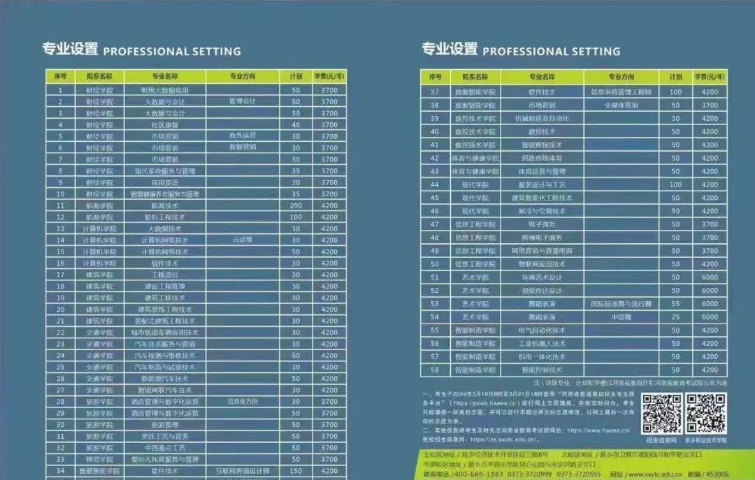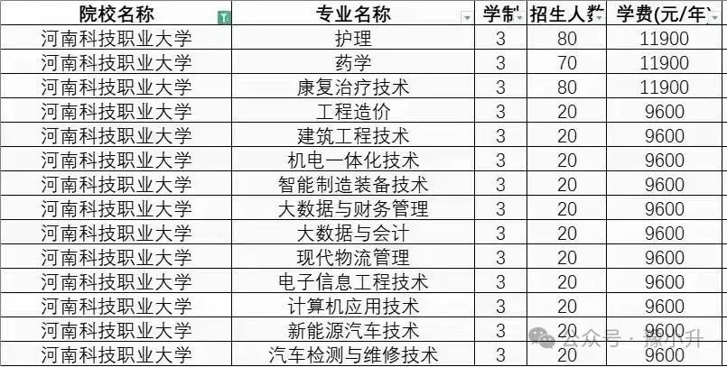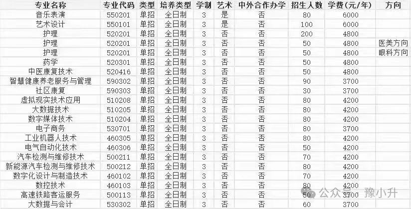 1.郑州工业应用技术学院2024年单招招生专业 2.河南科技职业大学2024单招招生计划 3.郑州科技学院2024年单招招生专业 4.洛阳科技职业学院2024年单招招生专业 5.信阳航空职业学院2024年单招招生专业 6.郑州卫生健康职业学院2024年单招招生专业 1、智能医疗装备,2、体育保健与康复,3、健身指导与管理 7.郑州电子信息职业技术学院2024年单招招生专业 8.三门峡职业技术学院2024年单招招生专业 9.郑州商贸旅游职业学院2024年单招专业 10.郑州医药健康职业学院2024年单招专业 11.林州建筑职业技术学院2024年单招专业 12.郑州澍青医学高等专科学校2024年单招招生专业 17.河南机电职业学院2024年单招专业 18.河南医学高等专科学校2024年单招专业 19.河南工业贸易职业学院2024年单招专业 20.鹤壁汽车工程职业学院2024年单招专业 21.郑州财税金融职业学院2024年单招专业 22.郑州智能科技职业学院2024年单招专业 23.郑州汽车工程职业学院2024年单招专业 24.南阳科技职业学院2024年单招专业 25.新乡职业技术学院2024年单招专业 26.郑州黄河护理职业学院2024年单招招生专业 27.郑州城市职业学院2024年单招专业 2820.河南工业和信息化职业学院2024年单招专业 29.济源职业学院2024年单招专业 30.郑州信息工程职业学院2024年单招专业 31.河南农业职业学院2024年单招招生专业 32.郑州工商学院2024年单招招生专业 33.漯河职业技术学院2024年单招招生专业 34.郑州软件职业学院2024年单招招生专业 35.济源职业技术学院2024年招生专业 36.安阳学院2024年单招专业 (以上信息,仅供参考,具体以学校发布为准) 关注此公众号持续更新中... 外省院校: 1.新疆生产建设兵团兴新职业技术学院2024年对河南单招招生计划 2.铁门关职业技术学院2024年河南单招招生专业 3.塔里木职业技术学院2024年河南单招招生专业 5.北京社会管理职业学院2024年河南单招招生专业 ![]() ![]() 高招·往期推荐 ![]() 2025年河南正式启动新高考,“3+1+2”选考科目要求公布! 023年河南省普通高校招生录取控制分数线 河南27所军校报考,录取分数、招生计划,你要资料都在这里 各地招生考试机构服务大厅最新联系方式 |