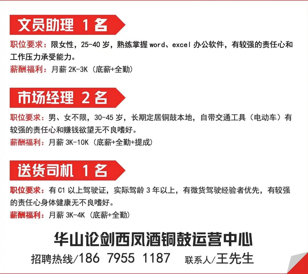 1、招聘通信设备维护人员1名,工作地点:铜鼓,要求如下:男、熟悉电脑操作、工资3000-5000元,有驾照及相似工作经验者优先,详情联系18979577851 陈经理。