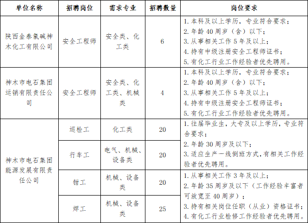 陕西金泰化学科技集团有限公司(简称“金泰化学”)是由陕西省首家国有资本投资运营公司——陕西投资集团有限公司控股的大型化工企业。金泰化学下属公司有陕西金泰氯碱神木化工有限公司、神木市电石集团能源发展有限责任公司、神木市电石集团运销有限责任公司,注册地在神木市,注册资本22.77亿元,资产总额128.5亿元。 为落实陕西省委、省政府关于加快推进“陕北高端能源化工基地建设”的要求,进一步扩大产业规模,延长产业链,做强做优做大陕投集团化工板块,促进煤化工产业向高端化、多元化、低碳化发展,金泰化学在已有40万吨/年电石、40万吨/年白灰、40万吨/年兰炭、1X135MW自备电厂装置产能的基础上,目前正在神木市高新技术产业开发区建设省级重点项目―—首套应用无汞催化技术60万吨/年高性能树脂装置节能减碳清洁高效一体化示范项目。项目总投资110.5亿元,分两期建设,主要建设60万吨/年高性能树脂、60万吨/年离子膜烧碱、2×45MW背压式发电机组、110万吨/年电石渣制活性氧化钙、80万吨/年电石装置、80万吨/年兰炭、60万吨/年石灰生产装置及配套公辅工程等项目。 现因金泰化学及其子公司发展需要,诚聘优秀人才: 陕西省榆林市神木高新技术产业开发区![]() 公开声明 本公众平台所发布的招聘信息均来源于互联网,转载的目的在于传递更多信息及用于网络分享,如果您发现网站上有侵犯您的知识产权的作品和其它问题,请第一时间与我们取得联系,我们会及时修改或删除。 |