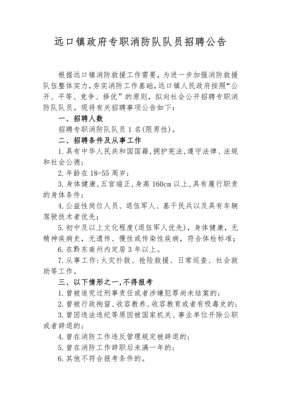 【政府】黔东南州远口镇政府专职消防队队员招聘公告!