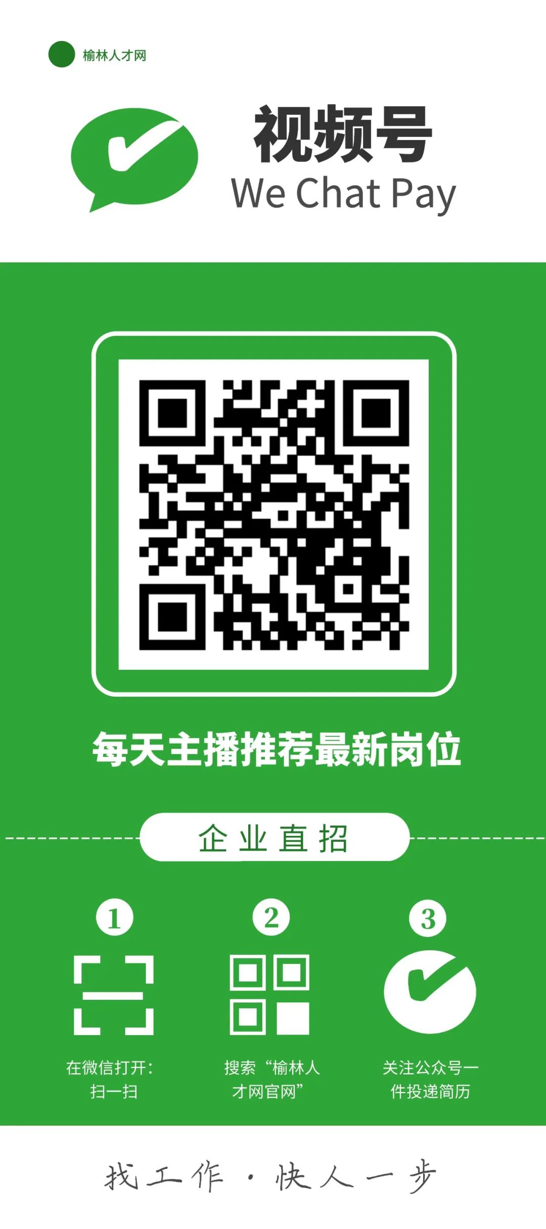 关注榆林人才网公众号 找工作投简历,更便捷! 如何申请职位? 1、识别二维码,关注榆林人才网公众号,点击进入官网界面 2、点击想要查看的岗位/公司,进行申请职位 3、或对话框回复岗位名称如”客服“、”司机“等关键字,专属小客服自动匹配岗位给你哦! 4、投递简历后,还可以点击【电话】按钮,直接与企业联系 5、每周9:00-16:00,榆林市总工会就业服务中心、榆林人才网就业服务基地窗口榆林市工人文化宫为广大求职者答疑解惑,会员企业联系客服可预约直播带岗。