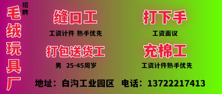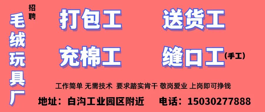 文诺毛绒玩具 招聘 打包配货工 2-5名