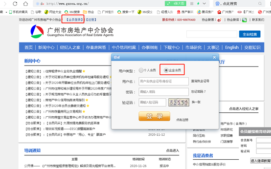 1、登录协会官网(www.gzrea.org.cn),点击页面左上角“会员登录” ,用户名为机构备案证号,初始密码为法人身份证后六位。