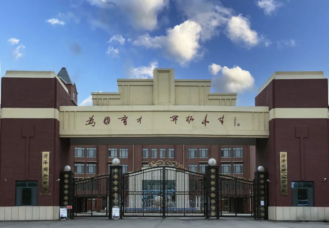 菏泽国开中学位于菏泽市鲁西新区嘉陵江路777号,是国开教育集团斥资10亿元人民币重点打造的一所高品质、特色化、智慧化、国际化的寄宿制普通高级中学。国开教育集团是中国民办教育百强集团,全国AAAA级放心示范教育集团,是一家以基础教育为主,高等教育、国际教育、学前教育并举,同时开发在线教育、中考高考研究、研学及教育配套产业等的综合性国际教育机构;是山东省民办基础教育规模最大的机构之一。截至目前,集团下辖国内学校19所、国际化教学机构及学校2所、教育配套公司29家,在校生30000多人,教职员工2600余名。菏泽国开中学依托国开教育集团规模办学优势,和集团旗下二十余所学校资源共享、优势互补,为学校的稳定发展、长期发展奠定了坚实的基础。学校位置优越、规划科学、布局合理、环境优美,占地200余亩,建筑面积10余万平方米。按抗震八度设计建设有综合办公楼、教学楼、宿舍楼、餐厅、四百米标准架空运动场等十余栋建筑,可容纳4200余人寄宿就学。