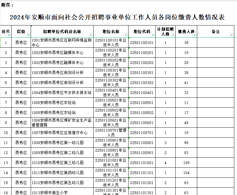 >2024年安顺市面向社会公开招聘事业单位工作人员各岗位缴费人数公告