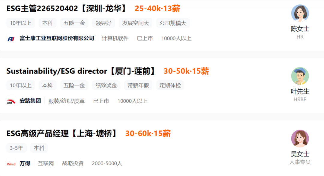 作为行业新风口,ESG几乎席卷和覆盖了各大领域!从招聘网站我们可以看到目前ESG方面的人才需求量呈现急剧增长!