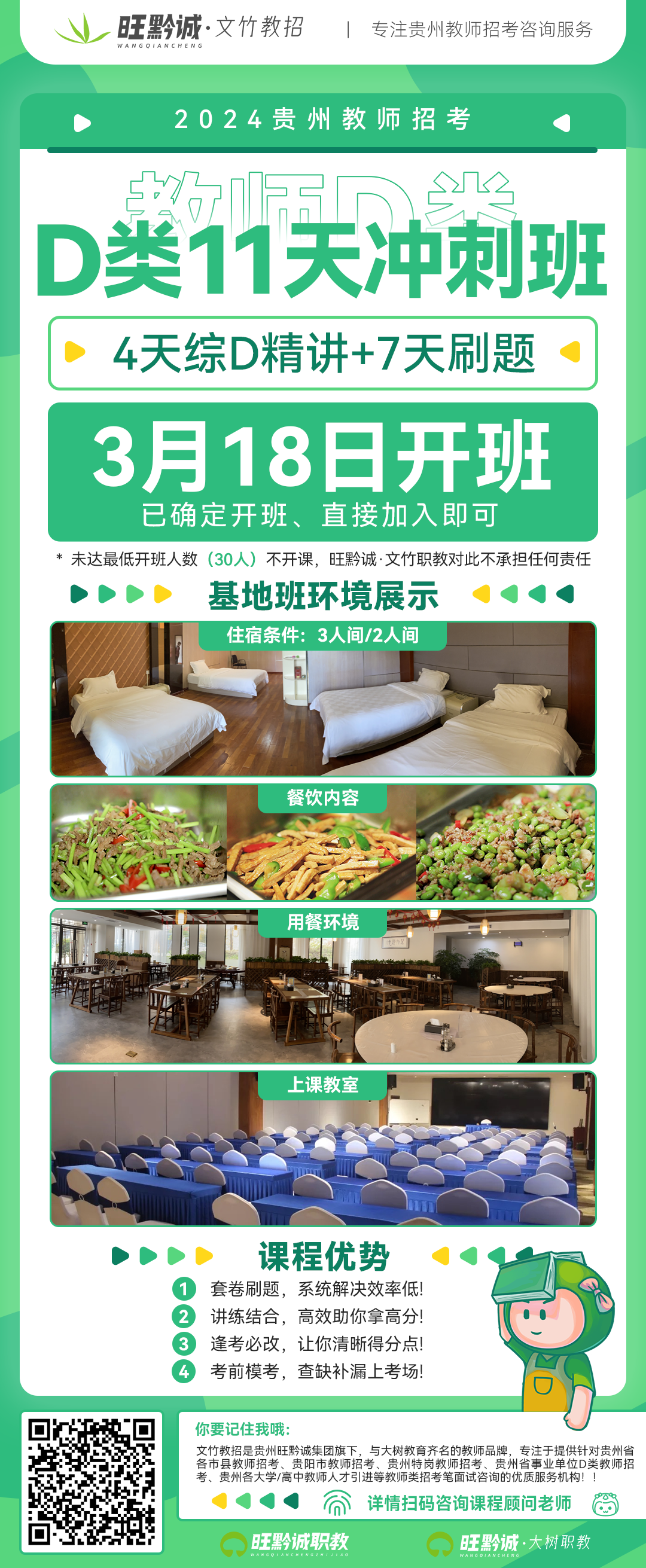 旺黔诚·文竹职教事业单位联考D类中小学教师笔试课3月18日基地班开课。