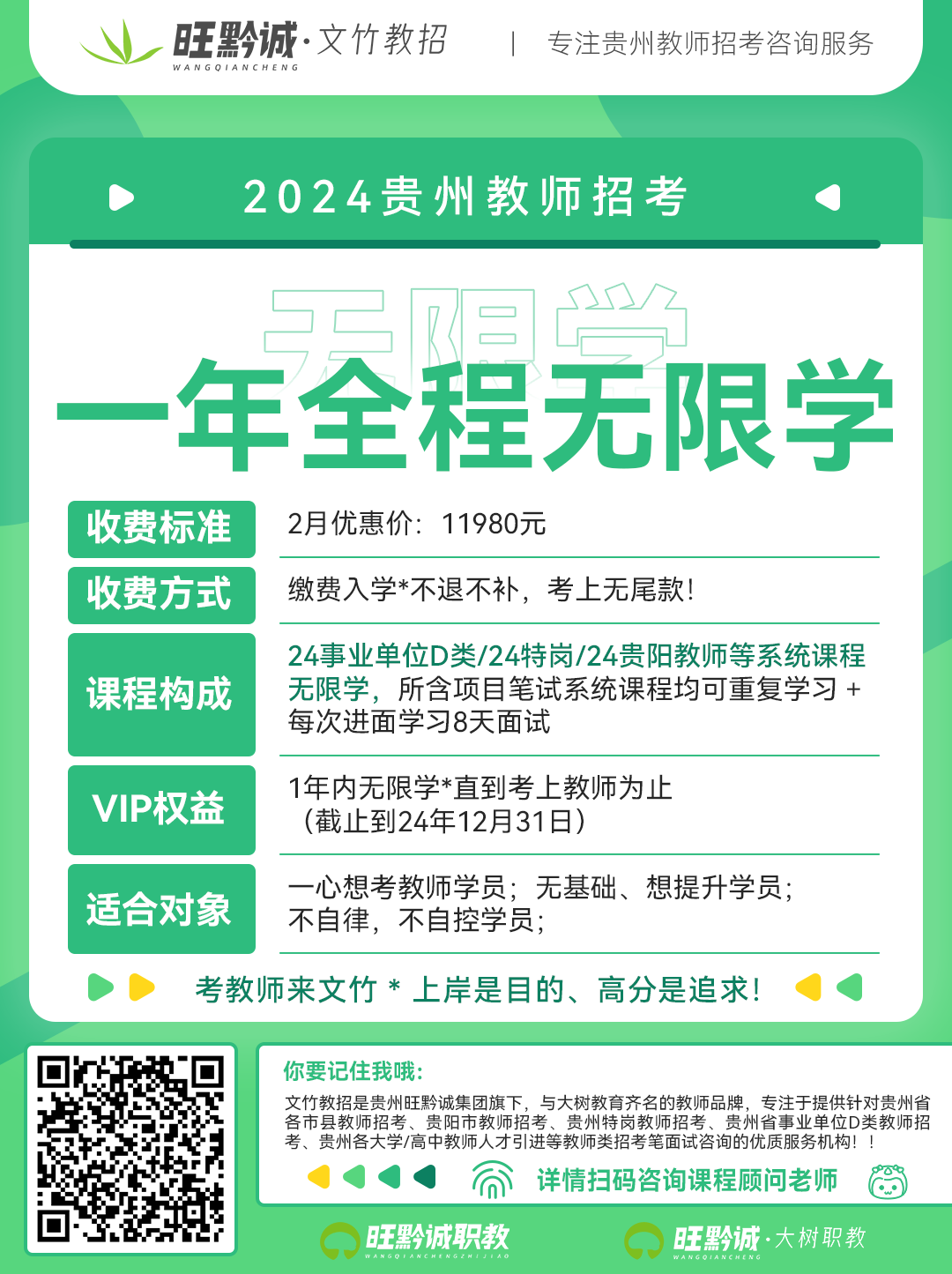 教师招考笔试面试无限学是指:截止到24年12月31日,24事业单位D类/24年特岗/24贵阳教师等笔试课程无限学,均可重复学习,且每次进面后还可以学习6天或8天面试。