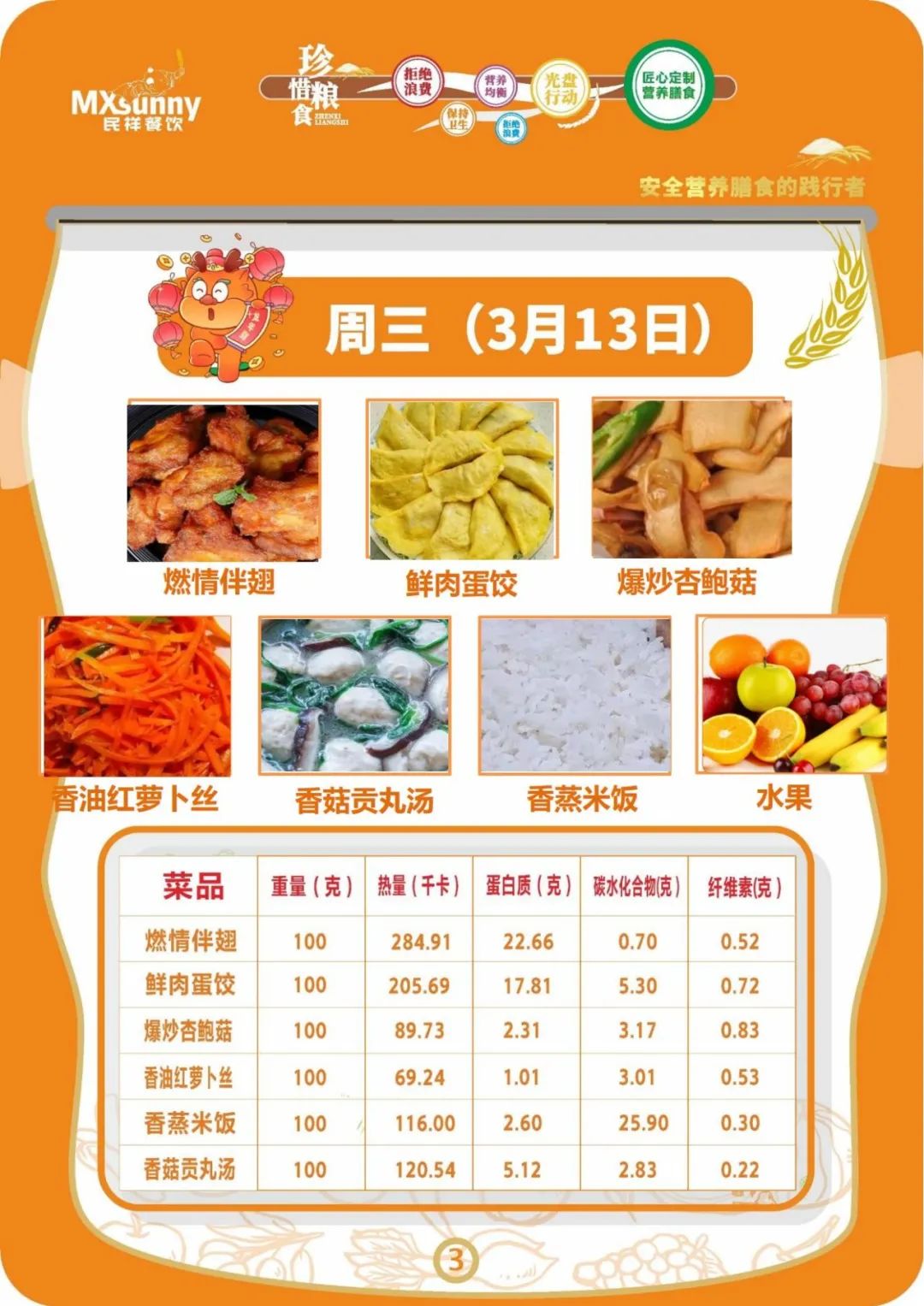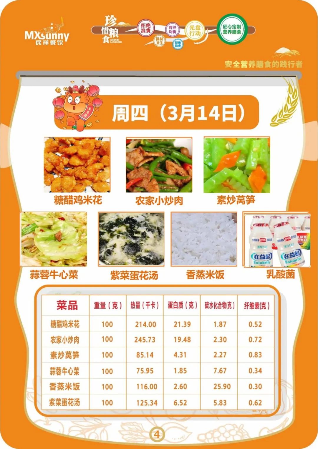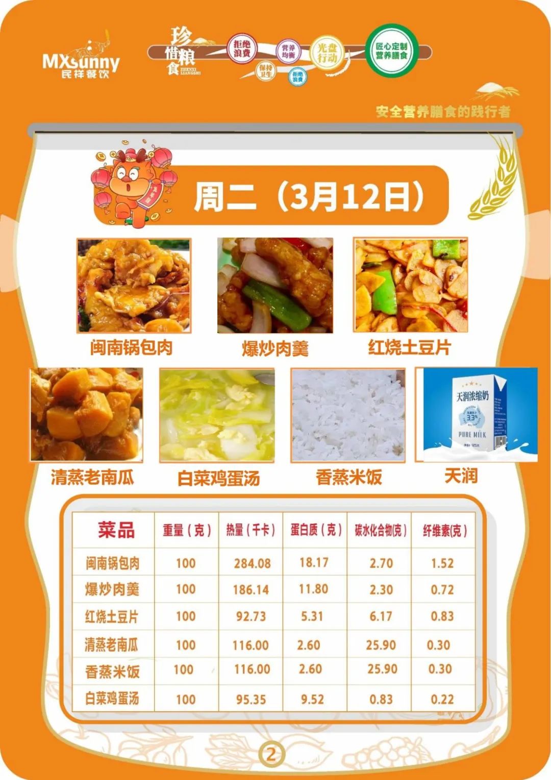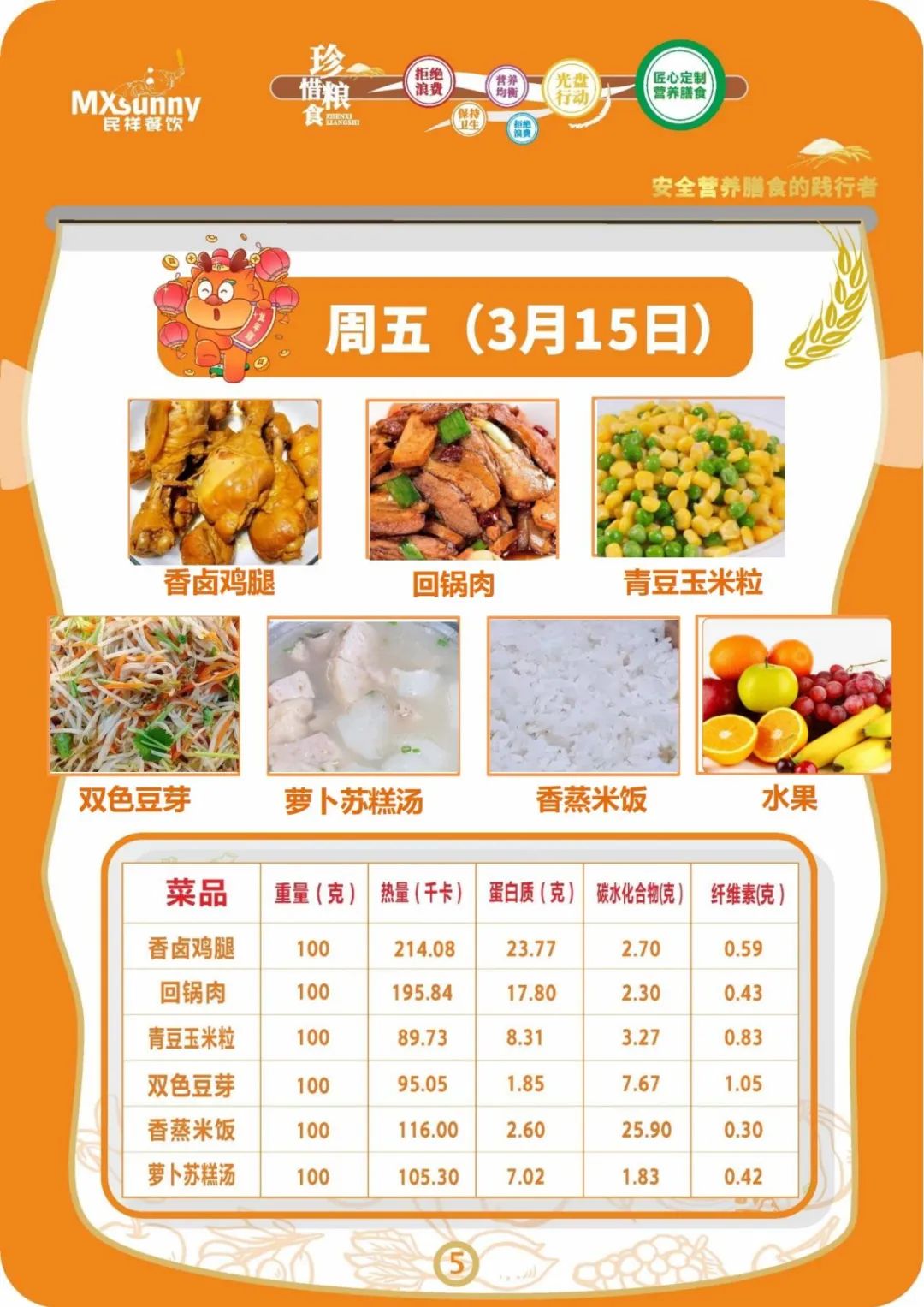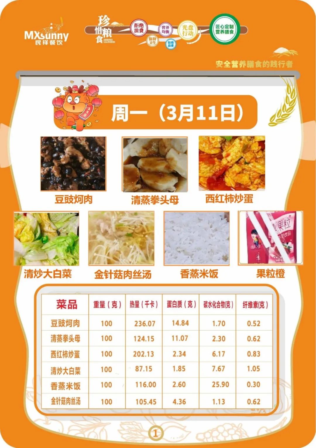学生食谱(2024.3.11—3.15)