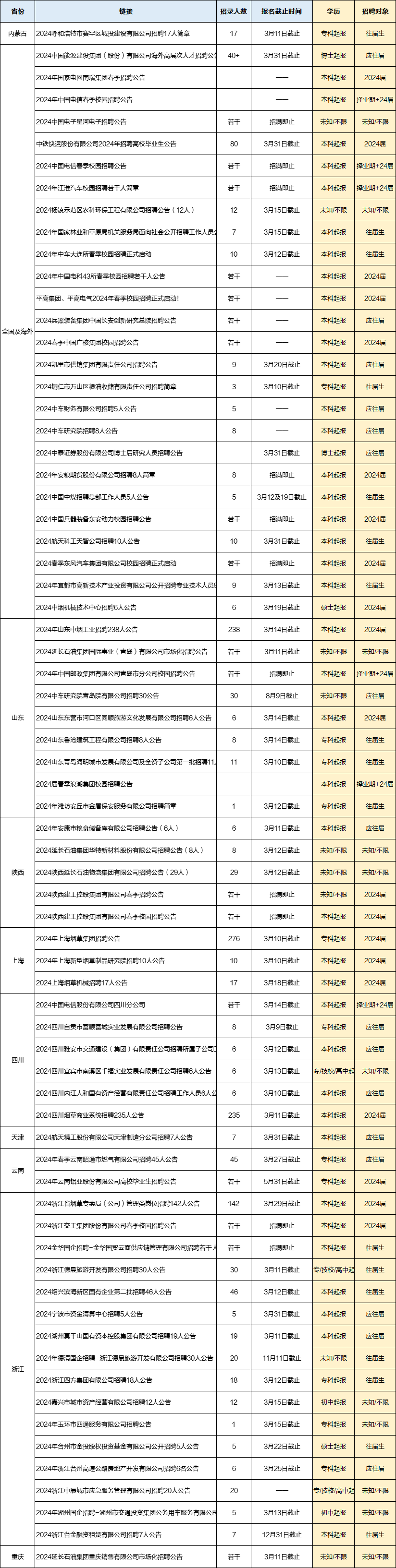 近期国企招聘汇总来啦!
