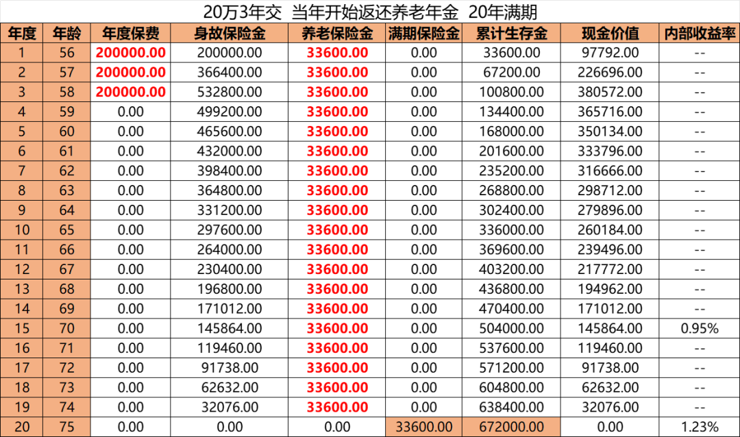 累积返还养老年金67.2万