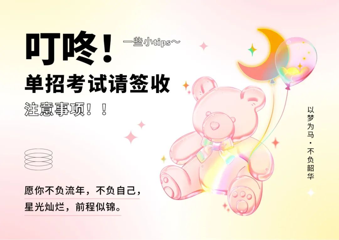 8.考试当天可以备好纸巾和饮用水(饮用水的外包装最好撕掉),不要携带贵重物品以及金属物品,以防丢失。