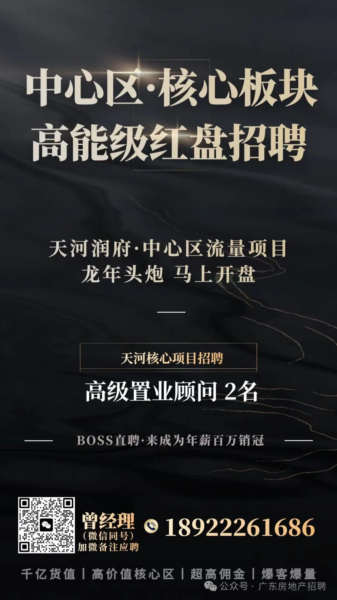形象好气质佳,性格开朗,责任心强;良好的服务意识、有天河相关竞品楼盘二年以上经验者优先录取。